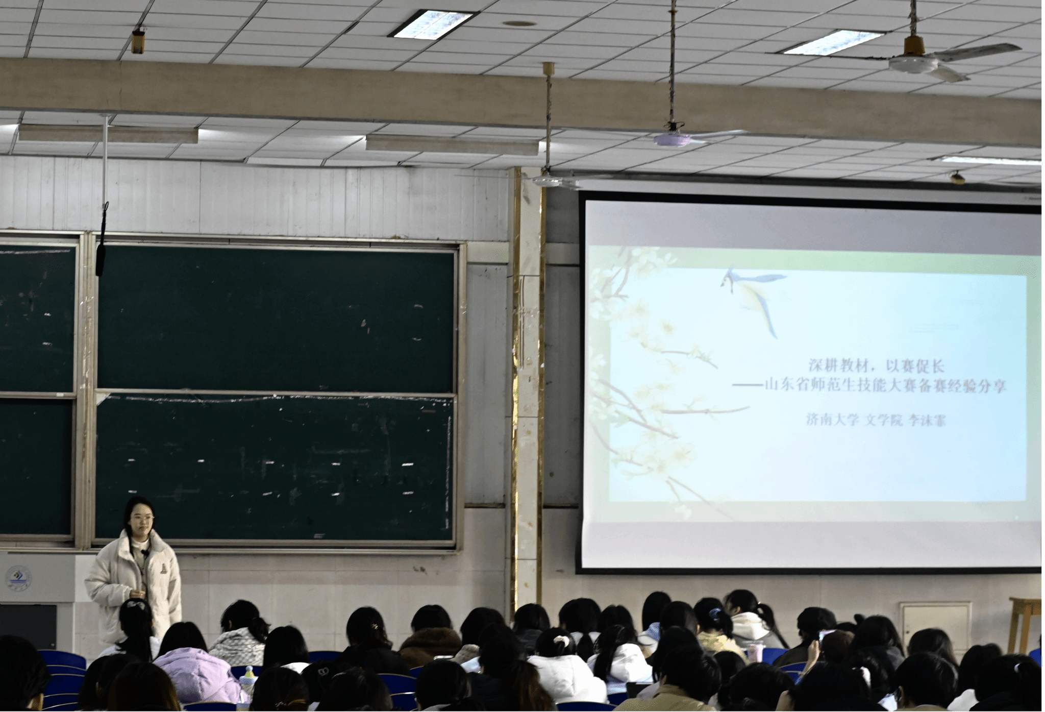 12月9日下午,VSport体育邀请了第十三届山东省师范类高校员工从业技能大赛小学组一等奖获得者李沫霏进行了经验分享。李沫霏以“深耕教材,以赛促长”为主题,结合自身备赛与参赛经历,对小学语文篇目教学设计进行了详细的讲解。她强调,备课时应跳出固定模板,以竞赛视角捕捉核心亮点,注重情境化设计,落实语文要素,确保教学流程完整、板书简洁。在技能方面,她指出脱稿授课、粉笔字书写、教姿教态的重要性。她提醒同学们应珍惜实习机会,在实践中培养快速备课的能力。此外,她还提到,备赛过程中难免会遇到瓶颈期,要秉持着“绵绵用力,久久为功”的态度,重视专业能力的系统梳理与提升,真正实现以赛促学、持续成长。
