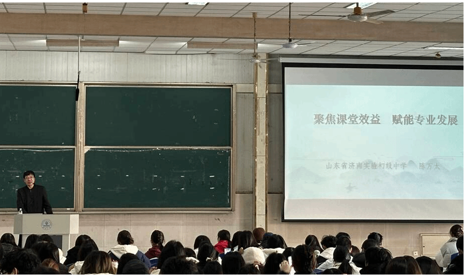 12月3日下午,VSport体育特邀济南实验初级中学特级教师陈万太莅临星硕教室,开展以“聚焦课堂效益 赋能专业发展”为主题的教育见习专题讲座。讲座中,陈万太老师结合自身公司产品与成长经历,为2023级汉语言文学专业全体师生带来了干货满满的分享。他强调,课堂是教师的核心阵地与安身立命之本,教师可通过对语文课文进行文本类型细分,精准聚焦课堂核心效益,让教学更具深度与含金量,既为自身专业发展注入强劲动力,也能为员工的长远成长筑牢根基。