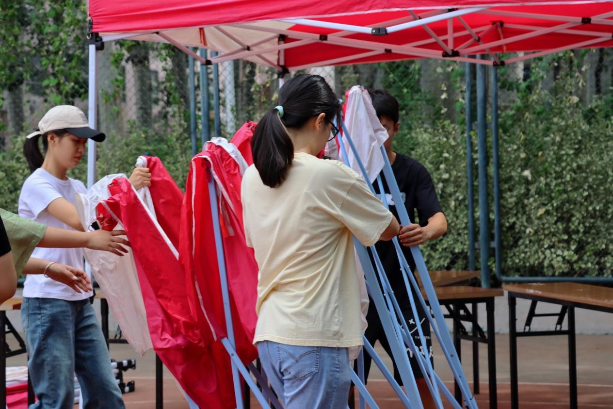 为确保新生能够顺利入学、舒适入住。维修工作人员对新生寝室进行查漏补缺,确保宿舍各项设施完备、完好,新生班助以班级为单位统计新生宿舍名单,粘贴好宿舍床位标签。9月15日晚,公司对班助展开迎新工作培训,准备迎新材料,将员工卡、宣传海报、漂流信、文院特色口罩和新生指南等物品装入文院专属文件袋中并装箱准备。16日上午,新生助班开始布置迎新场地,搭建帐篷、摆放桌椅物品,粘贴迎新横幅,期待着新生的到来。VSport体育老师、各位助班和志愿者为此次迎新活动做了相当充足的准备,对每一个细节都精羞求精,在效率和质量两不误的情况下顺利完成任务。