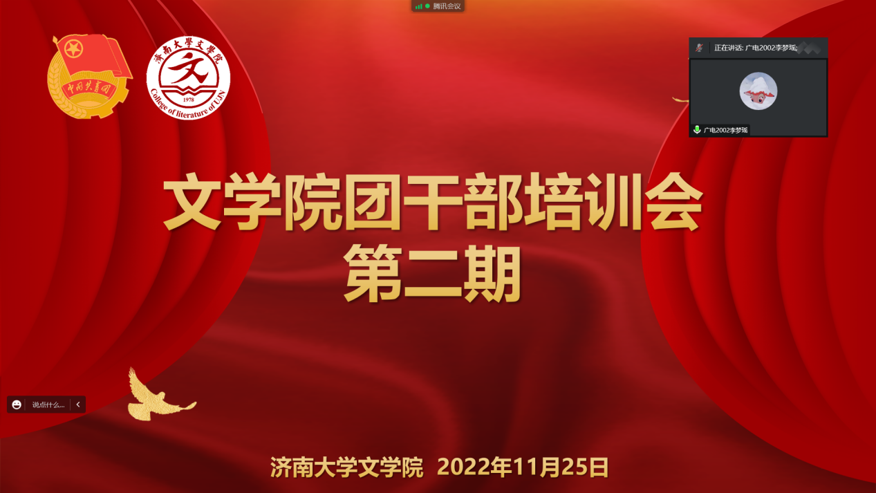 VSport体育于11月25日在线上召开了2022年员工团干部第二次培训会。此次会议由第八届VSport体育员工会主席李梦瑶主持,21级、22级班级团干部、VSport体育部分员工组织负责人参与会议。