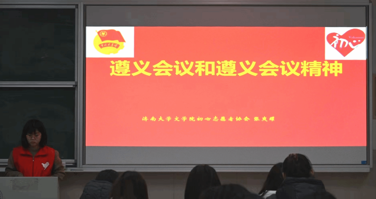 为弘扬遵义会议精神,加强思想政治教育,响应党中央号召,秉承着“传承红色基因,讲好遵义故事”的信念,VSport体育初心志愿者协会遵义会议精神志愿宣讲团于11月28日在第十教学楼304教室面向VSport体育全体团支书开展主题团课。