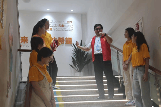 研活团队成员们跟随着李老师的脚步,一步步走上了通往理想与抱负的阶梯,他指出,走上这层楼梯就意味着青少年应当承载起父母老师的厚望,奔赴大好前程。闪光的楼梯前的大字“希望”“未来”,一步一步地指引我们走向更高的位置,这是胸怀壮志的青年人的人生路的具像化写照。“自古英雄出少年”,“少年强,则国强”,团队成员们真切认识到,青年时期的教育对于人的发展重要性就如同脚下的一级级台阶,是具有基础性、可积累性的。在青少年时期就将爱国主义的种子深深埋下,才能在发展过程中从爱国主义汲取力量、明确方向;与此同时,我们真切感受到,前辈们对于新时代青年们的未来寄予的希望之大、付出的努力之多动。