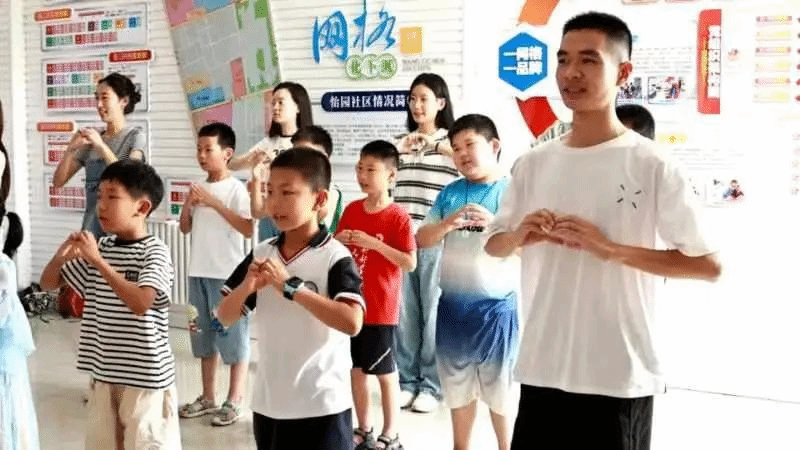 在7月8日晚7点,团队抵达乳山后立即与怡园社区负责人进行对接,接受课堂教学设备的使用培训,负责人为团队介绍了社区孩子的基本情况,对团队的工作计划表示肯定与支持。7月9日上午8点,团队准时前往怡园社区,正式开始团团小课堂的授课活动。经过见面课的初步熟悉后,团队成员紧锣密鼓地开始了为期5天的授课服务。