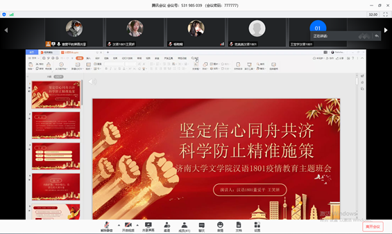 此次活动以班级、党支部和团支部为单位,开展疫情防控网络思政教育主题班会、支部会、主题党日和主题团日活动。活动主题紧紧围绕“坚定信心、同舟共济、科学防治、精准施策”的十六字方针,主要内容包括理想信念和爱国教育、防疫知识和生命健康教育、法律法规和校规校纪教育三个方面。活动特别强调在防控形势向好的当下要加强思想建设、做好个人防护措施,不信谣不传谣,加强社会责任和感恩担当教育,心理健康、生涯规划和就业指导教育以及应急处置流程规范教育,坚决打赢此次疫情防控攻坚战。在活动中,各班班委为同学们讲解相关内容、播放相关的短视频,部分同学也和大家分享了自己在疫情期间的感受。同学们在活动中认真学习、积极发言,对相关问题进行探讨和交流,并表达了对战胜疫情的信心,他们也一致表示将听从国家和公司的安排,积极应对疫情,做好安全防护。