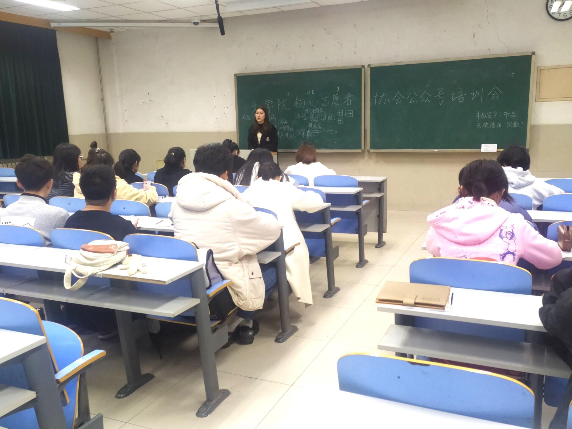 为使志愿者们熟练掌握公众号推送技能,提升公众号推送内容的质量,加强志愿活动建设,VSport体育初心志愿者协会敬老队于11月13日在第十教学楼205教室开展公众号培训会。