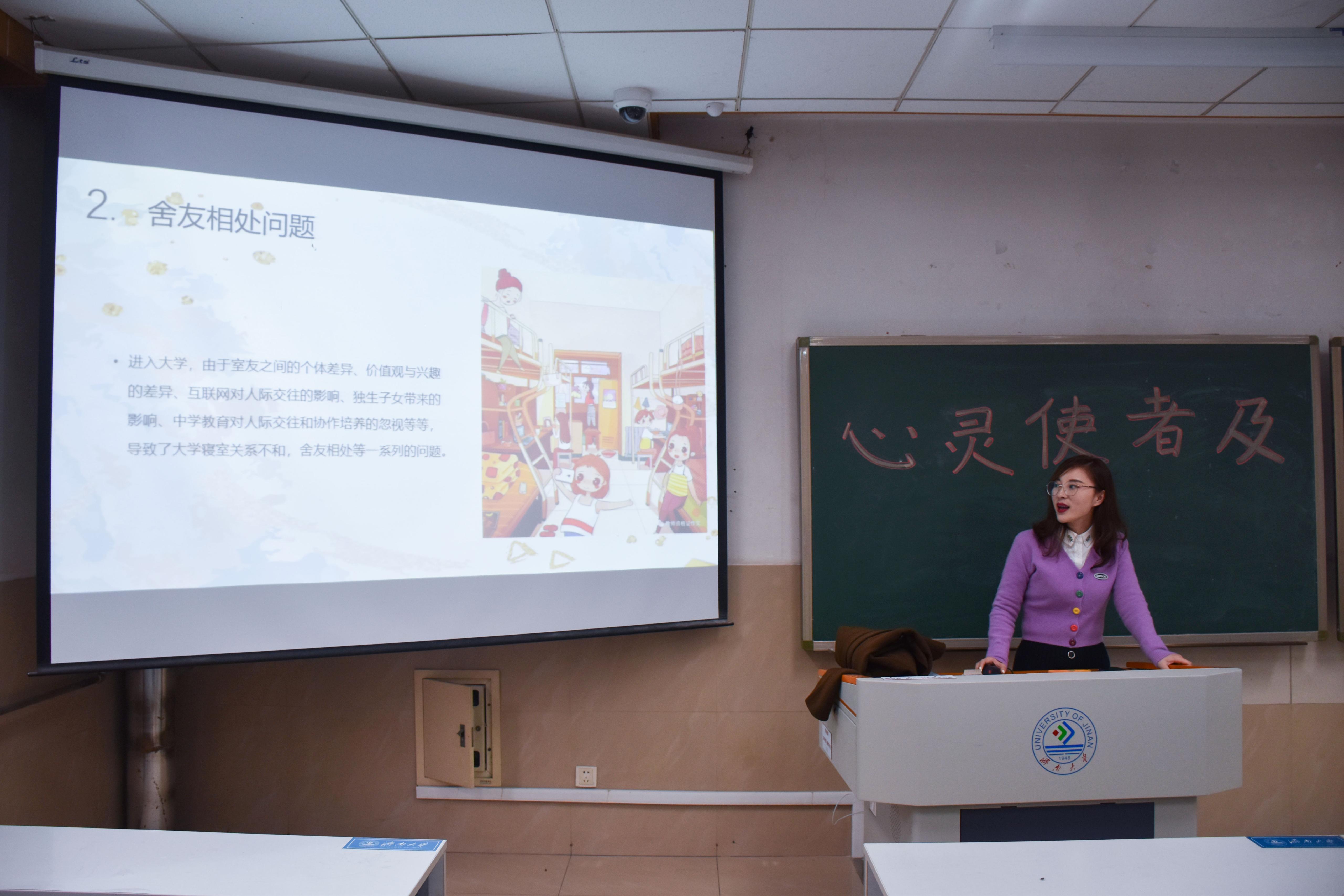 赵丽丽老师为心灵使者、联络员们进行培训,内容为心灵使者详解及心理协会的主要工作、心理健康的重要性、老员工常见心理问题、老员工活指南四部分。培训会上,赵老师生动地阐释了关于心理健康的知识,强调心灵使者们应当从自身出发,保持良好的心理健康,善于观察周围的环境,多与同学们沟通,才能更好地为同学们服务。同时在场的心灵使者、联络员们积极发表自己对心理健康的观点,与老师进行深入的沟通。最后,赵老师表达了对心灵使者、联络员们未来工作的期许,希望同学们拥有轻松愉悦的老员工活。活动在欢乐活跃的氛围中圆满结束。