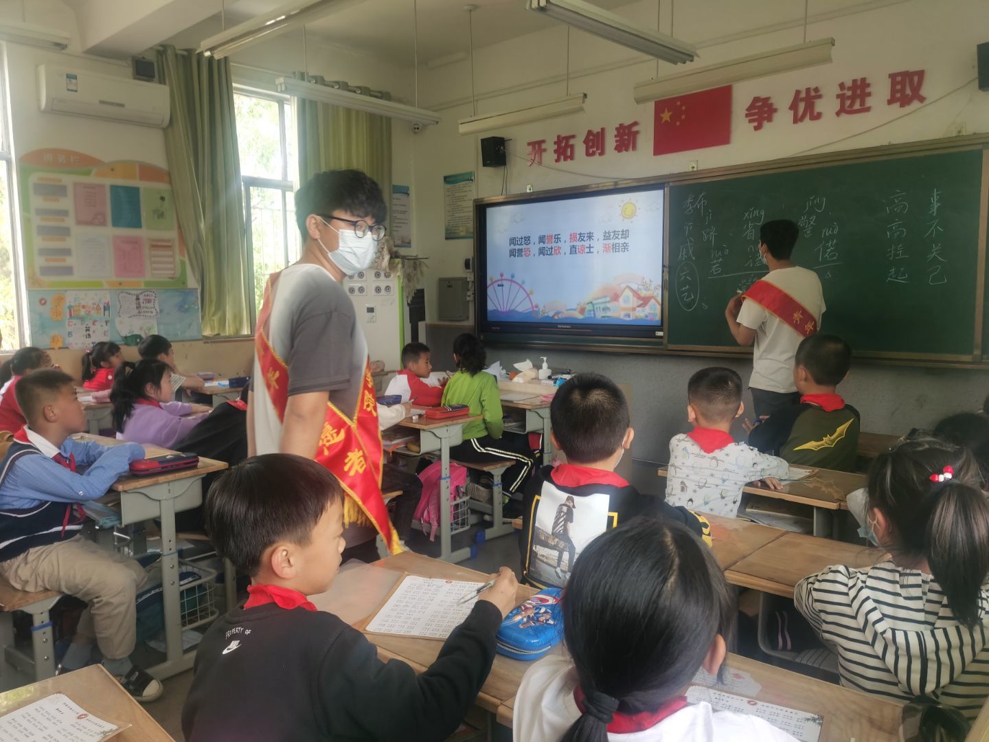 活动开始前,志愿们充分宣传、积极参与,并根据参与人数进行了任务分配。活动准备期间,志愿者们认真备课,根据各个年级员工理解能力的不同选择了不同的教学方式,力求充分调动他们的课堂积极性并对课堂进度进行合理规划。活动进行时,一个志愿者利用多媒体进行授课,主要讲解《弟子规》第三章《出则悌》的内容与重点字词,详细且有重点地解释文章大意;另一个志愿者主要负责维持课堂纪律,推动课堂进度,通过加分或小奖品奖励等措施充分调动员工们的课堂积极性。在课堂上,志愿者们通过采用齐读、男女对比朗读等形式来加深员工对文章本身的理解,同时形成良性竞争提高同学们的参与度和投入度,同时还通过讲述与教学内容相关历史典故,例如孔融让梨,卜式让弟等的形式,引导员工领悟“入则悌”的真谛,以期达到学以致用的最终目的。