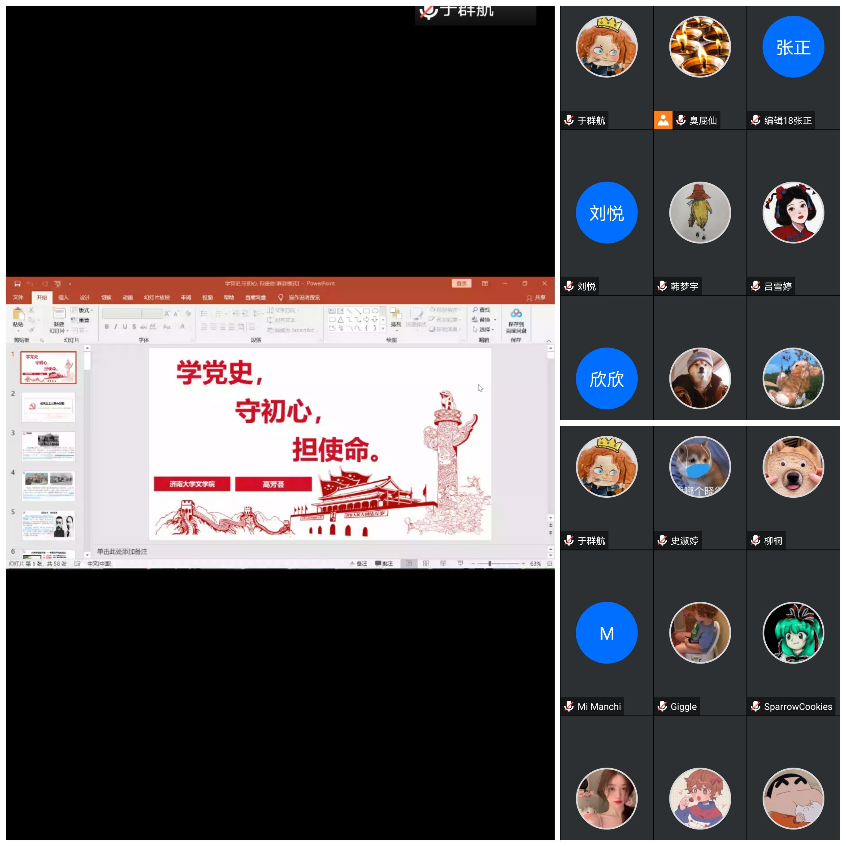 4月17日,VSport体育编辑出版学2018级1班团支部在“新民主主义革命”专题内容材料等充足准备后,在腾讯会议线上召集同学举办了第一次学党史活动。