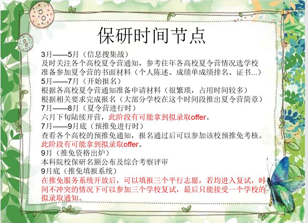 本次活动的主题为“保研经验分享会之无论文竞赛的保研边缘人怎么逆袭”。活动主要内容分为五个板块,分别是唐学姐的个人简介、保研的前期准备、夏令营考核过程、关于夏令营的常见误区和答疑环节。其中唐学姐对保研的前期准备、夏令营考核过程和关于夏令营的常见误区进行了进一步的详细讲解,以帮助同学们对保研过程有了更全面的了解,使同学们受益匪浅。其中受到最广泛关注的便是夏令营方面的问题,学姐从准备书面材料、了解开设夏令营的院校、夏令营流程、线上考核以及线下考核等各方面向同学们介绍了前期准备和夏令营的考核的详细过程,收到同学们的一致好评。在答疑阶段,参与活动的同学们踊跃地提出了相关问题,唐学姐也一一进行了答疑。