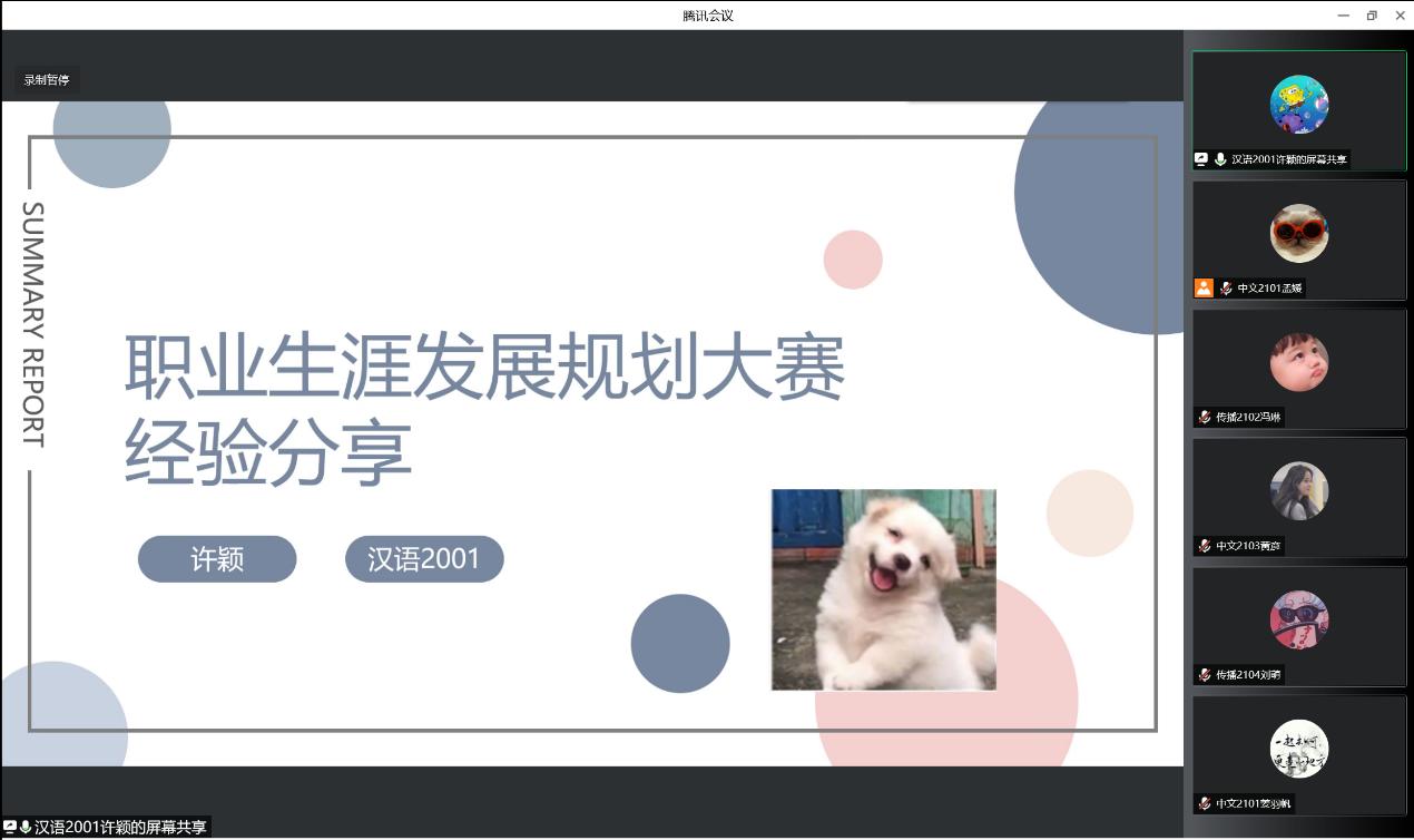第一位分享的许颖学姐以本人参与大赛的经历,分别从赛事简介、比赛流程、赛事准备等多个方面对该项大赛进行了详细介绍,许颖学姐讲诉了大赛的流程及时间,分为公司初赛、公司复赛、精英训练赛和最终决赛;赛事主题的确定,学姐展示了近年的活动主题,了解大赛命题的动向。另外,学姐还展示了自己的职业生涯规划书作为范例,为参与以及欲参与职业生涯规划大赛的同学们提供了切实的帮助,也让对职业生涯规划不了解的同学明晰了其对个人生涯的理解。第二位分享的燕文芳学姐着眼于职业生涯规划书的撰写方面和答辩方面作了细致地讲解,学姐对职业生涯规划书的撰写提出了几点建议,例如,判断个人与目标职业的匹配程度,利用数据模型分析,如何评估与调整目标等,这些建议对撰写职业生涯规划书提供了很大帮助。在答辩方面,学姐展示了问题的分类,包括地域类,核心素养类,时事热点类等类型,并列举了范例。两位学姐分享结束后耐心地解答了同学们的疑惑,并给予同学们鼓励与支持。