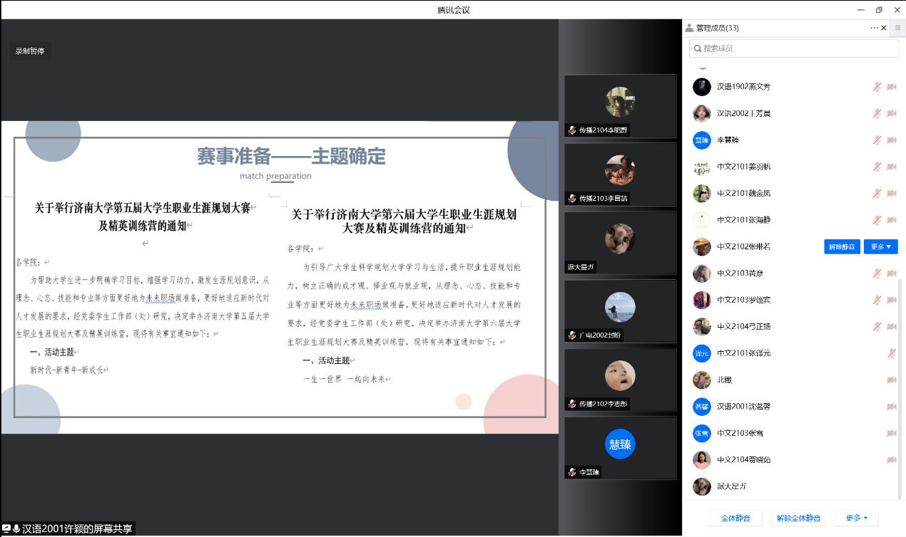 当前,疫情防控形势仍然严峻,公司采取封控管理,公司高度重视同学们的身心健康与全面发展。本次的分享会帮助了同学们更好地进行职业生涯规划,更加深入地了解职业生涯规划大赛,相信本次活动的举办能使同学们能更加积极地参与到职业生涯规划中来,促进同学们成长和发展。