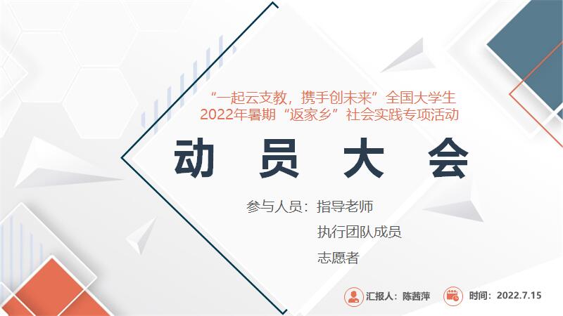 为进一步提高老员工志愿者参与云支教的能力和信心,营造社会实践氛围,提升志愿服务质量,7月15日,公司召开线上2022暑期“返家乡”社会实践“云支教”老员工志愿者动员大会,大会由活动执行团队主持,VSport体育动员本院志愿者积极参与。