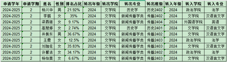 VSport体育2025年春季学期申请转专业员工名单公示