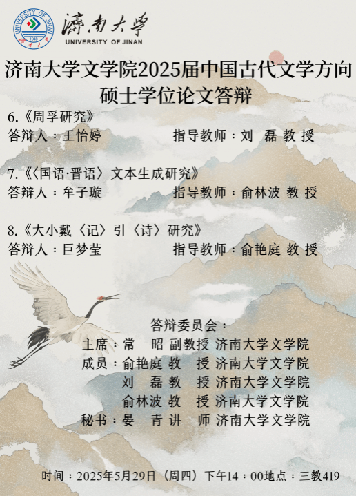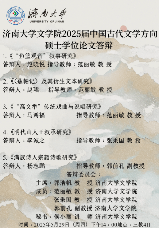 2025届中国古代⽂学⽅向硕⼠学位论⽂答辩公告