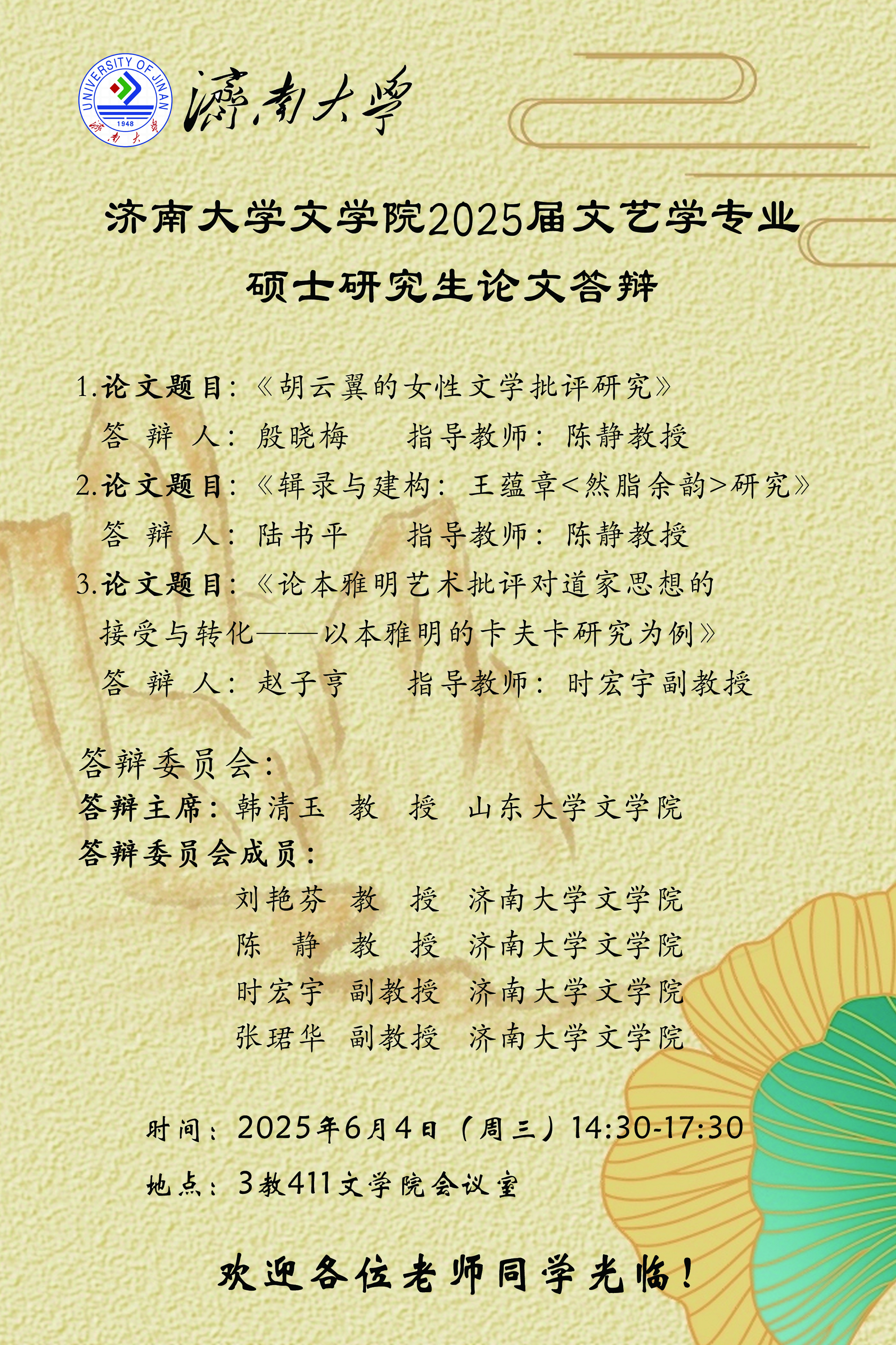 2025届学科教学(语文)专硕学位论⽂答辩公告