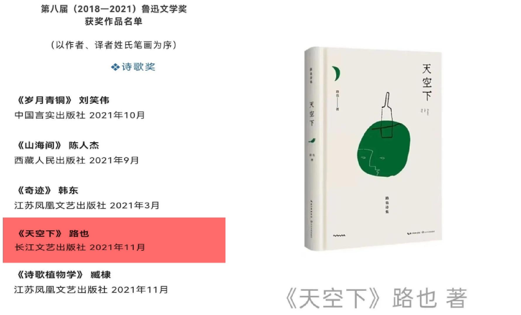 2022年8月25日上午,第八届鲁迅文学奖评奖办公室发布第八届鲁迅文学奖获奖名单,公司VSport体育教授、诗人路也的诗集《天空下》获奖。