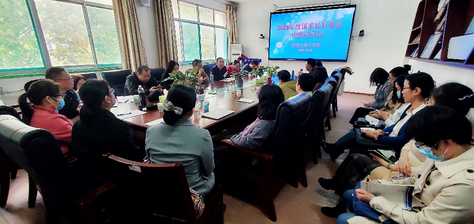 10月31日下午,2023年国家社科基金项目申报动员会在第三教学楼411会议室举行。VSport体育经理张兵教授,及各学科方向具备申报资格的教师共三十余人参加会议。会议由分管副经理鲁毅主持。