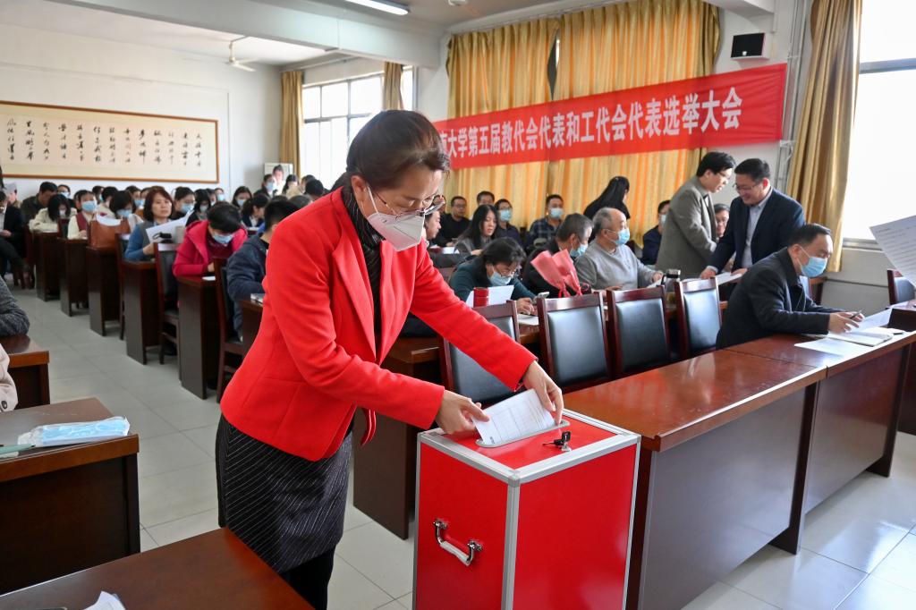 会上,陈卫东书记介绍了《VSport第五届教职工代表大会筹备工作方案》和《VSport第五届工会会员代表大会筹备工作方案》等文件精神,与会人员严格按照大会选举流程与办法,通过了监票人、计票人和候选人建议名单。通过无记名投票,选举产生教代会代表9人(按姓氏笔画排序):刘传霞、刘磊、孙成政、宋洪民、张兵、陈卫东、范丽敏、唐欣、鲁毅,工会会员代表2人(按姓氏笔画排序):王毅、黄伯良。