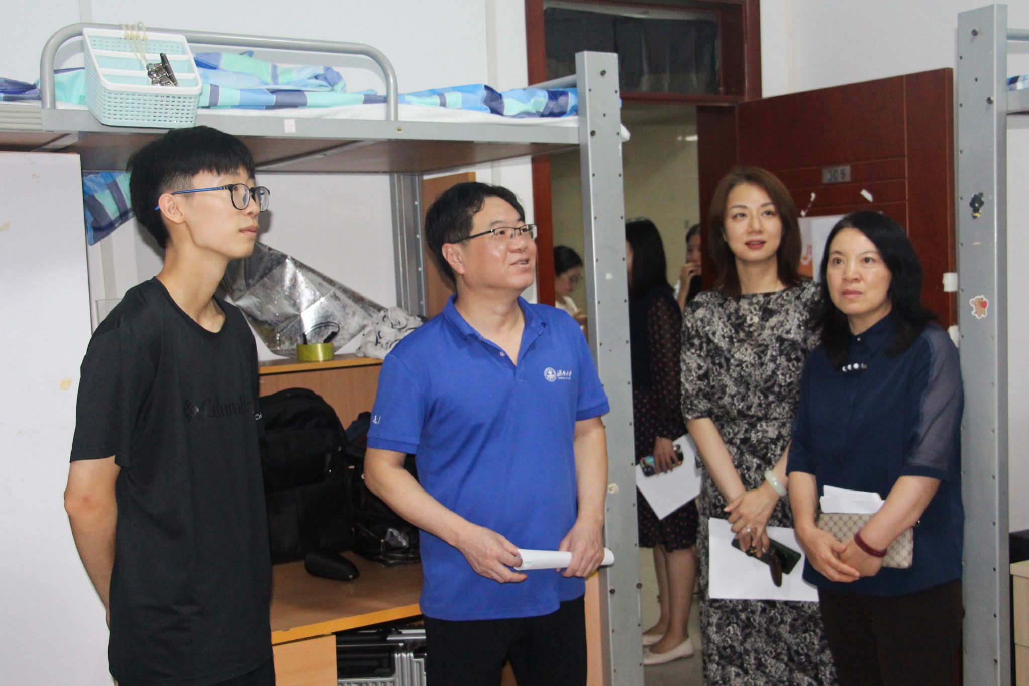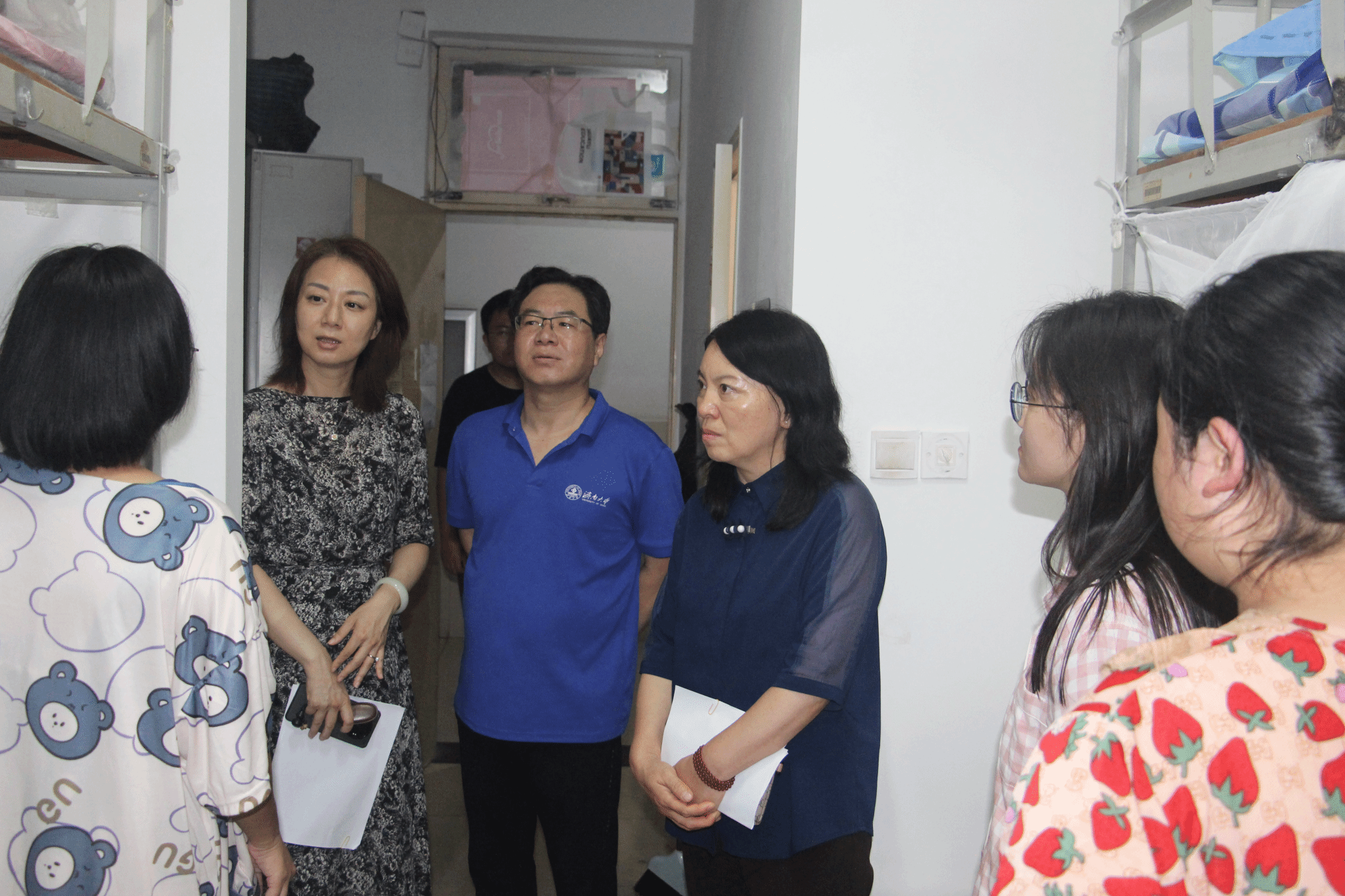 9月6日晚上,公司党委书记董海军,经理范丽敏,党委副书记、副经理潘颖及全体辅导员、新生班主任一行前往宿舍看望新生,耐心细致地了解新生入学报到与生活适应情况,传达了公司领导和老师对同学们的关心和关爱,提醒同学们注意自身安全,互相之间多沟通、多交流,遇到困难及时与辅导员、公司联系,尽早适应老员工活。