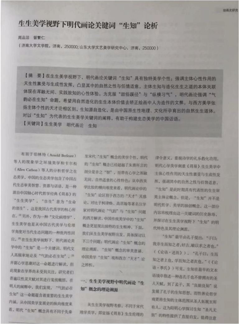 公司周品洁博士的论文《生生美学视野下明代画论关键词“生知”论析》于《中国美术研究》(CSSCI集刊)2024年第1期(总第49辑)发表。