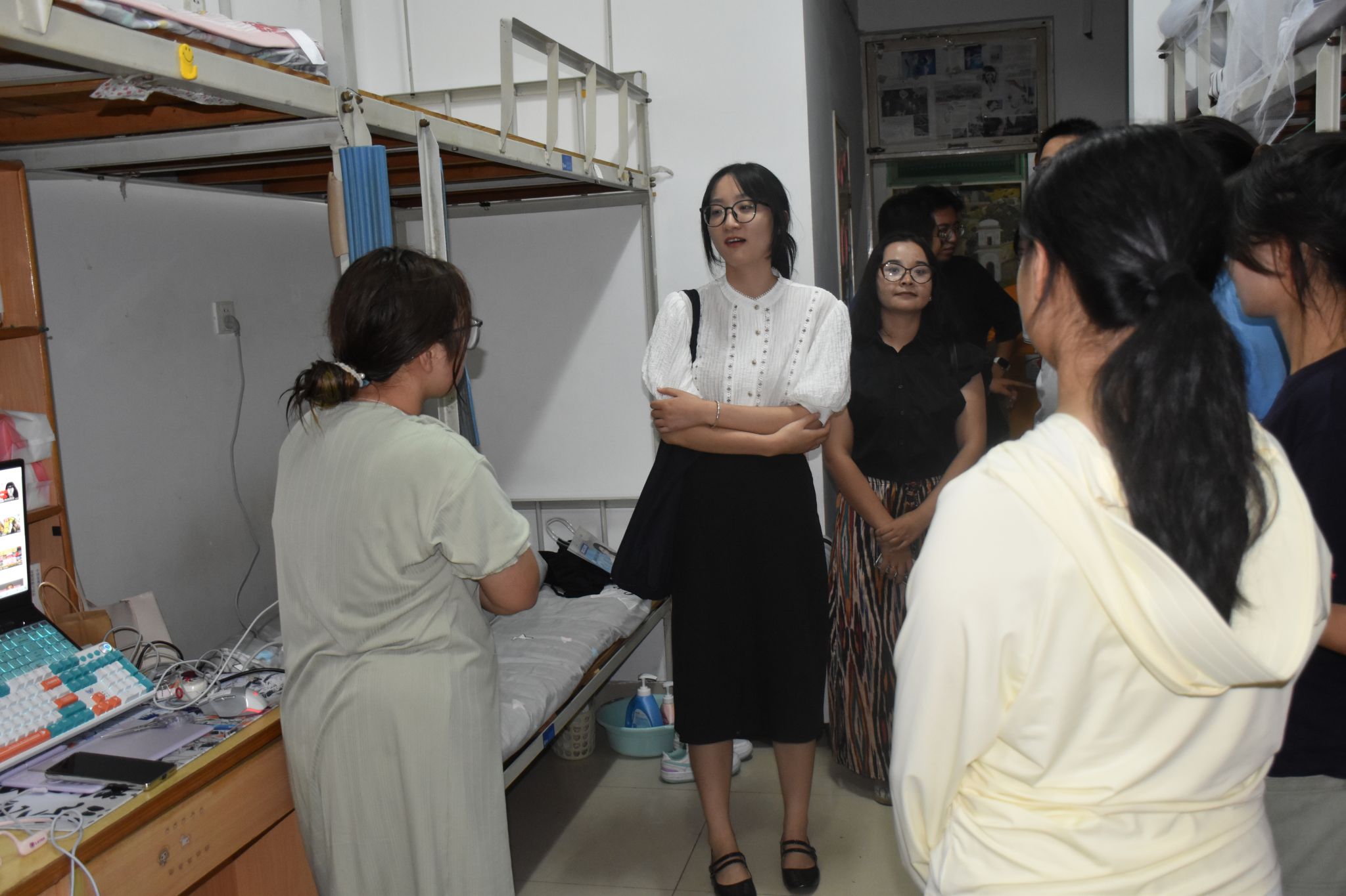 下午,公司辅导员和班主任老师们还走访了新生宿舍,他们亲切地和同学们交流着生活和学习的问题,详细了解新生进校后的适应情况,并对同学们表达了关怀与嘱托。