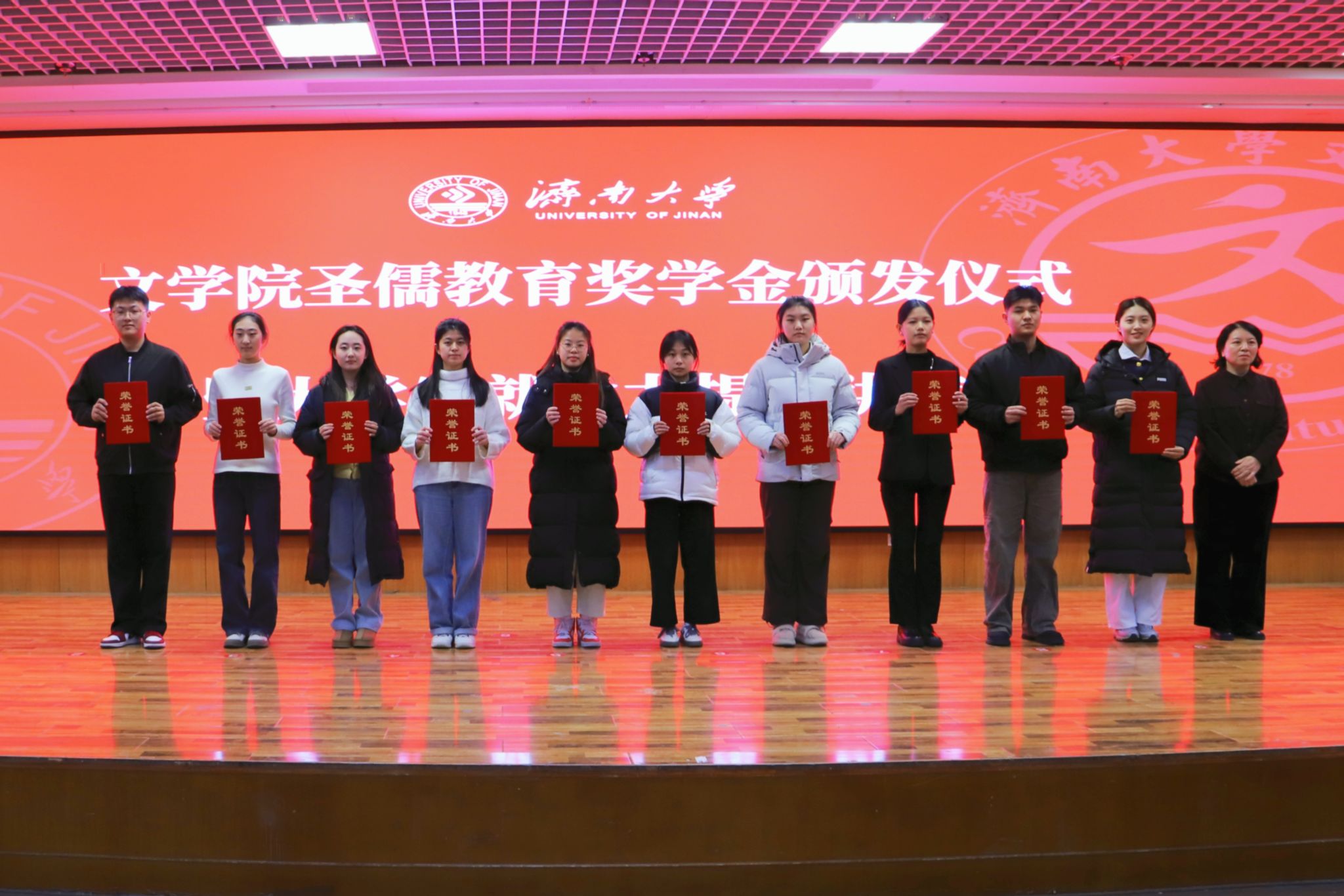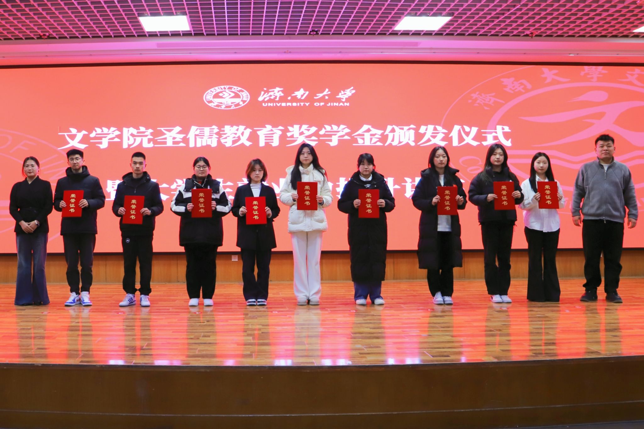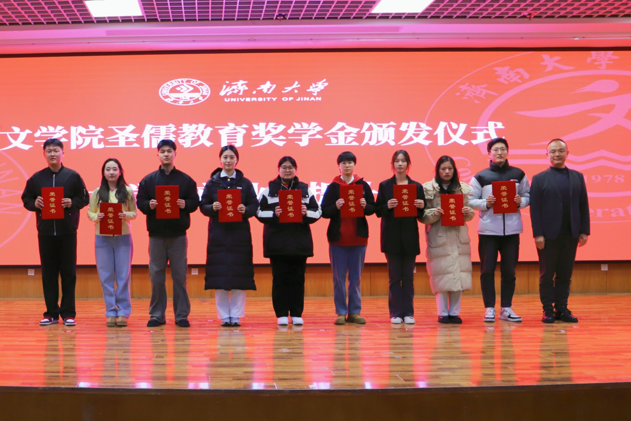公司领导及圣儒恒信(山东)教育科技有限公司嘉宾为获奖集体、个人颁发圣儒教育奖学金证书。