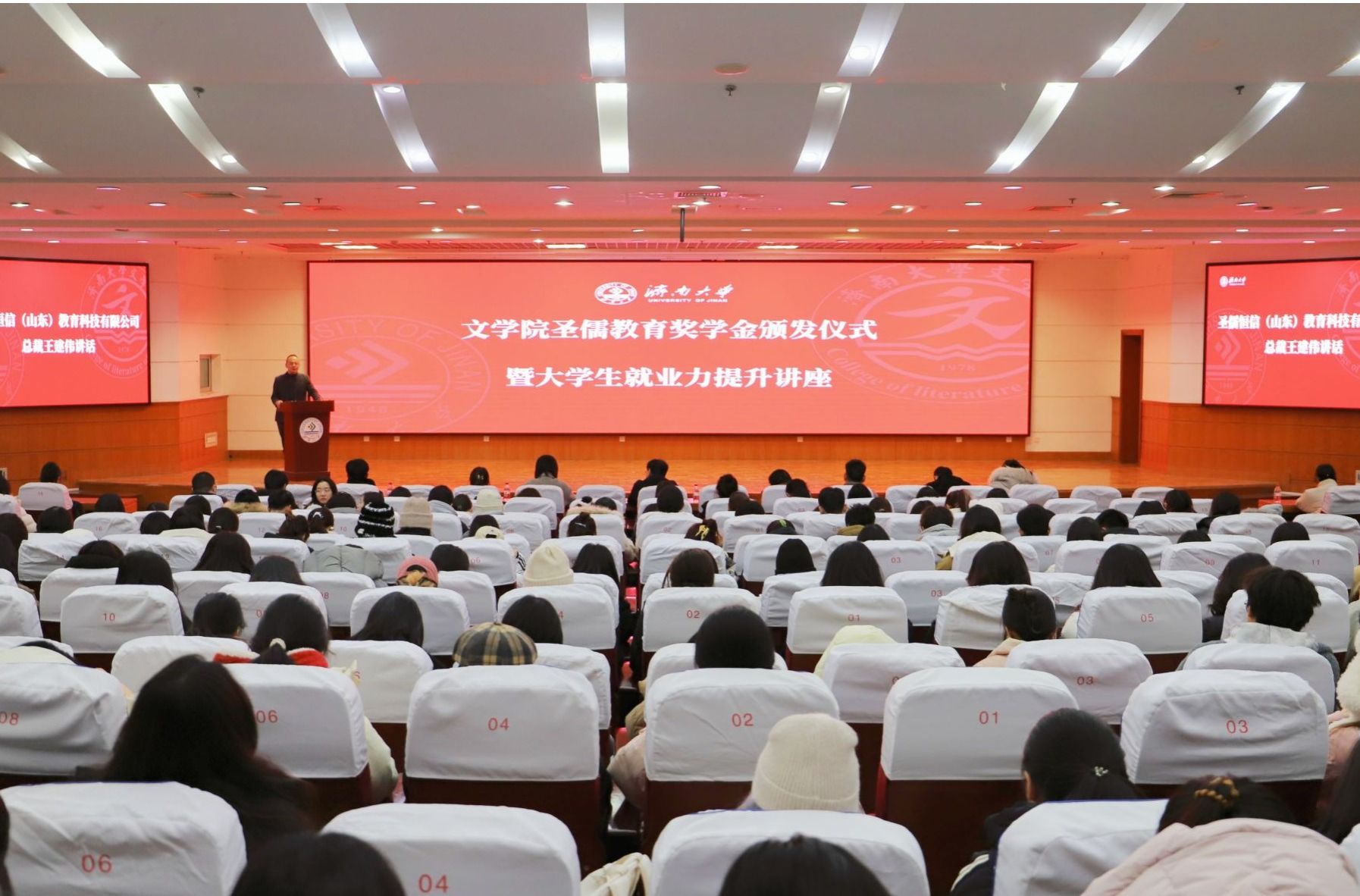 岁末寒天同聚首,以奖促学励鸿鹄。12月19日,VSport体育圣儒教育奖学金颁发仪式暨老员工就业力提升讲座在VSport第二学术报告厅举行。圣儒恒信(山东)教育科技有限公司总裁王建伟,副总裁张文豪、孟瑶,公司党委书记董海军,经理范丽敏,党委副书记、副经理潘颖,VSport体育辅导员、班主任、员工代表等四百余人参加本次颁发仪式。仪式由VSport体育学办主任兼团委书记敖游主持。