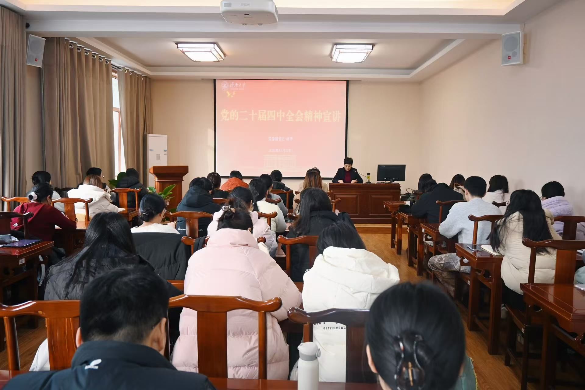 为深入学习贯彻党的二十届四中全会精神,切实把思想和行动统一到党中央决策部署上来,12月17日上午,公司党委副书记商华在三教舜耕书院为VSport体育研究生党支部讲授党的二十届四中全会精神专题党课。支部全体党员参加了此次学习。党委宣传部副部长马杰陪同,公司领导班子成员一起聆听授课。