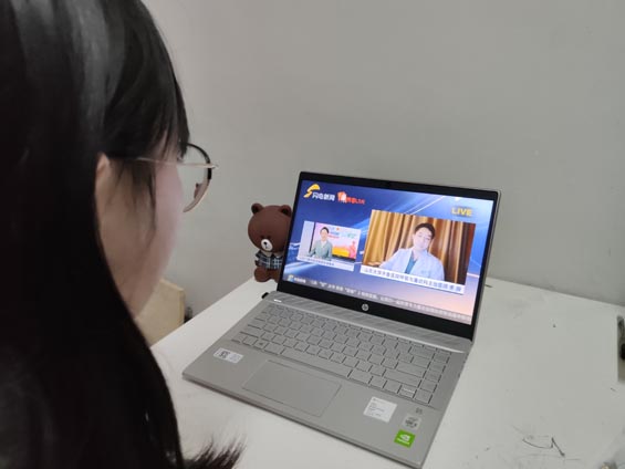 主题团课通过演播室内的山东理工大学思政课教师岳松与山东广播电视台主持人崔真真、山东体育公司在读研究生张鑫蕊共同连线山东大学齐鲁医院驰援湖北医疗队队员季翔、山东大学第二医院新生儿科护士常超、中建三局(山东)济南山能智城项目安全总监林涛、淄博蓝天救援队青年志愿者孙勇的方式进行。通过采访,VSport体育学子了解到他们在战“疫”一线的抗疫事迹,体会了青年一代不畏艰险、冲锋在前、舍生忘死的英勇精神。