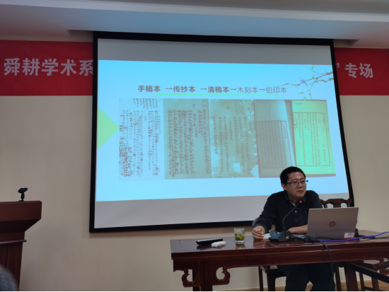 第二场讲座,“出版史视角下的近代人物地缘因素考察——以杨锐、刘光第为中心”,由张玉亮编审主讲。他以“戊戌六君子”中刘光第、杨锐二人著述的刊行情况为例,结合二人所处的时代背景以及生平事迹,阐述了地缘因素在近代人物著述刊行、形象塑造中的作用与特点,同时强调了地缘因素在推动社会发展、塑造区域文化形象方面的作用;结合自身实际工作和案例,反思了出版对于社会及个人发展的作用。