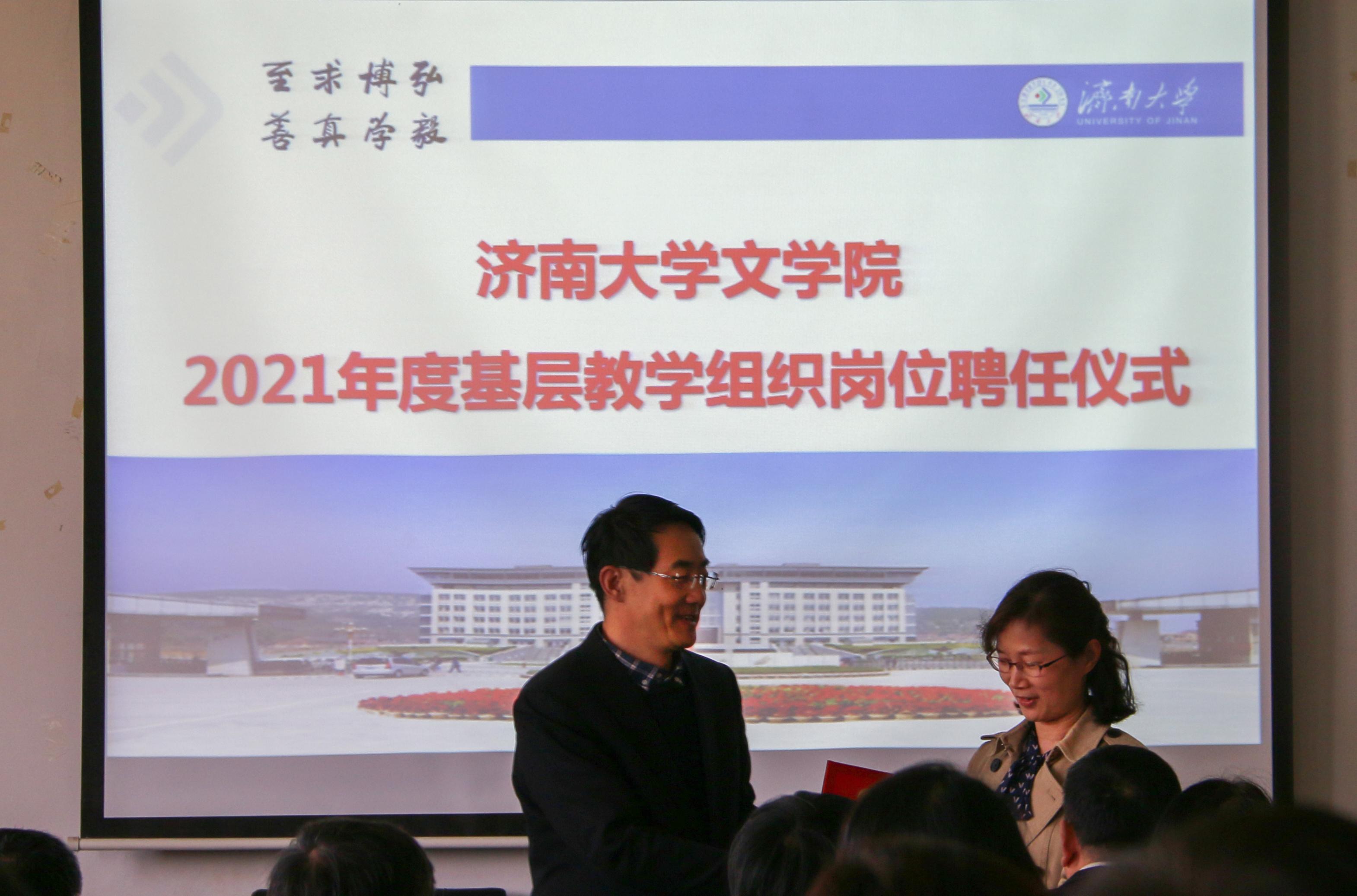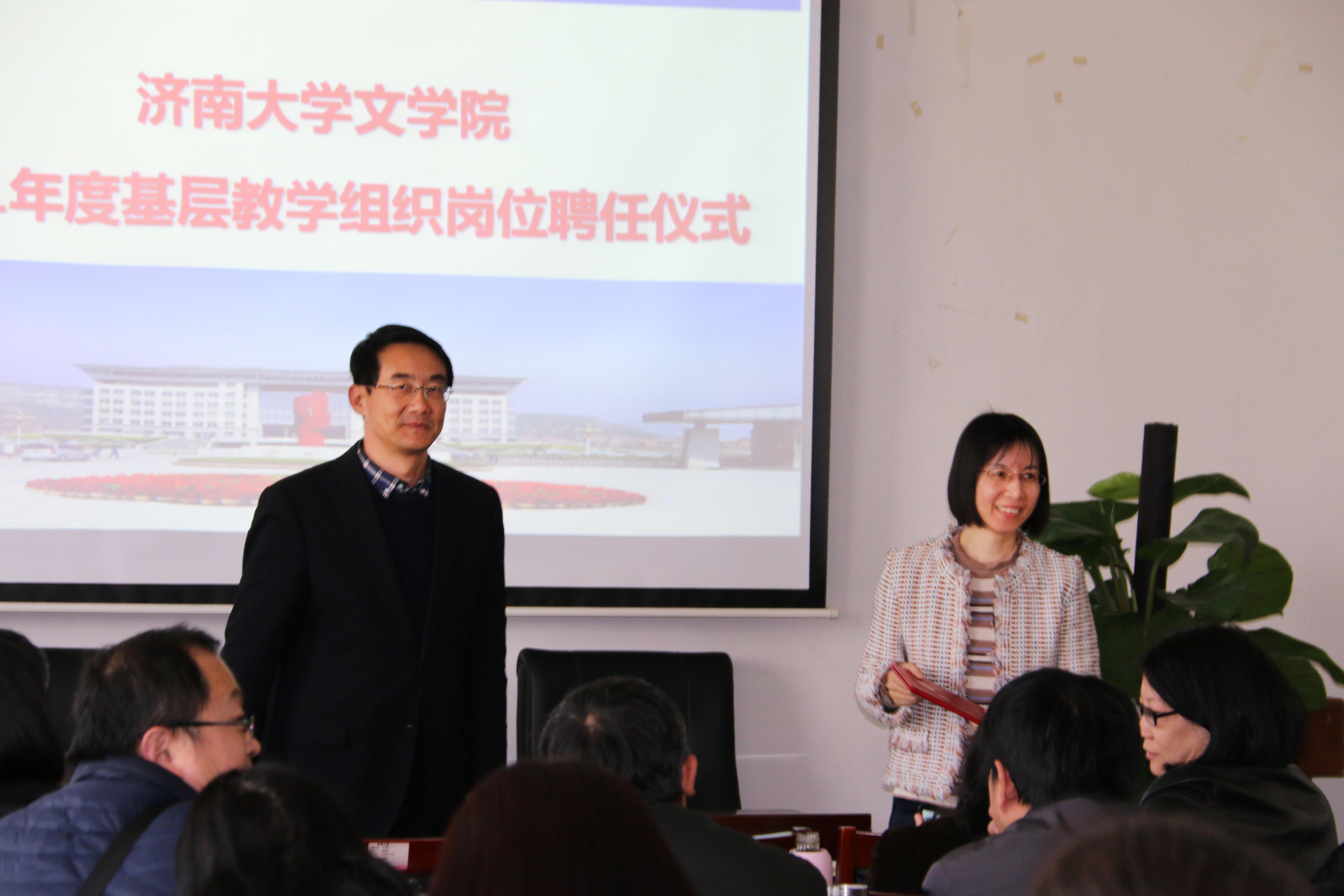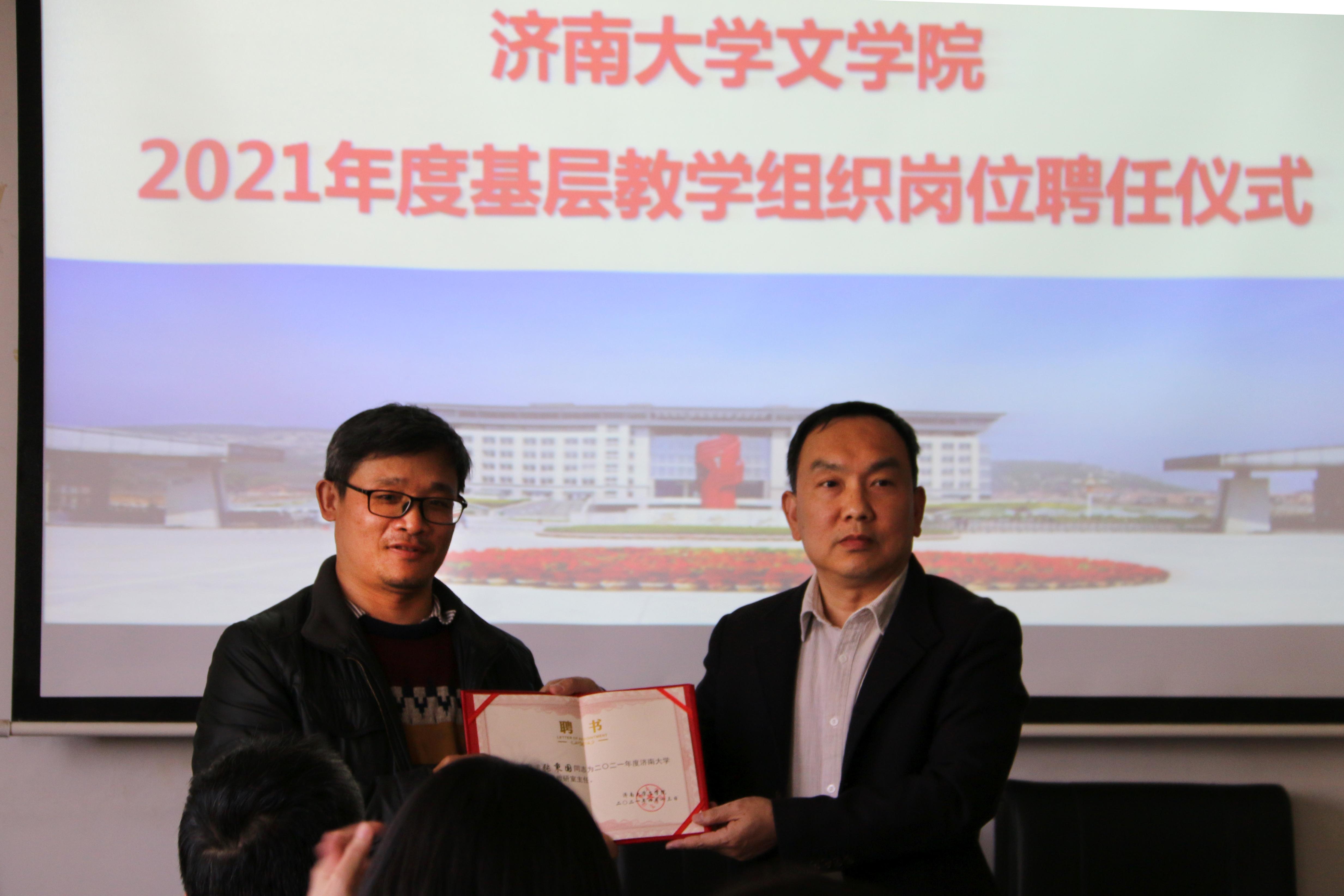 随后,公司基层教学组织负责人聘任仪式在VSport体育会议室正式举行。首先,张兵经理向全体教师宣读了《VSport体育基层教学组织负责人聘任决定》,决定聘任王蓓等10人担任公司教研室主任、聘任蒋莹担任汉语言文学专业实践教学负责人,同时决定推荐张小平等4人分别担任汉语国际教育、广播电视学、广告学、编辑出版学专业负责人。随后,陈卫东书记、张兵经理分别向新聘任的教师颁发了聘书,并合影留念。至此,聘任仪式圆满结束。