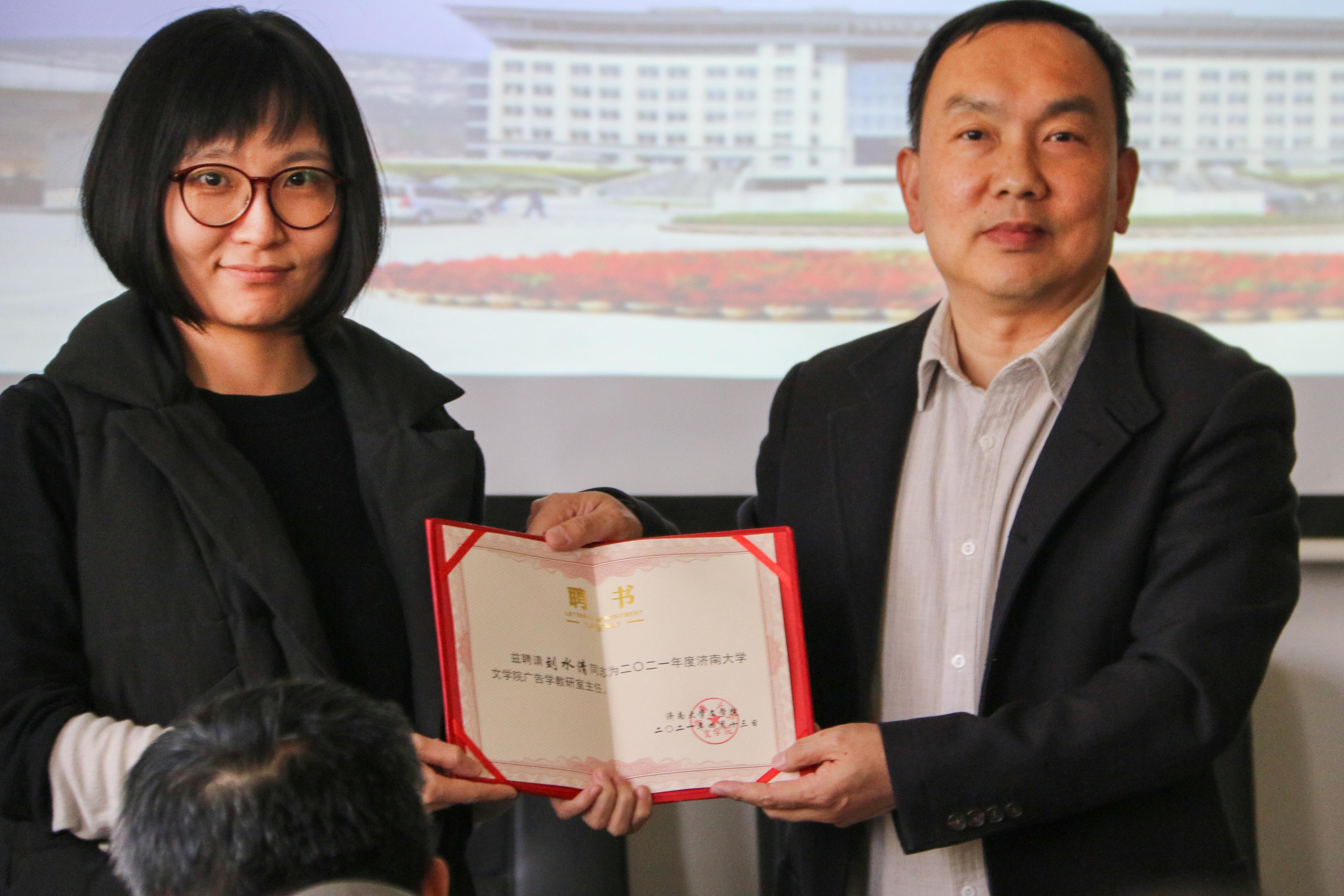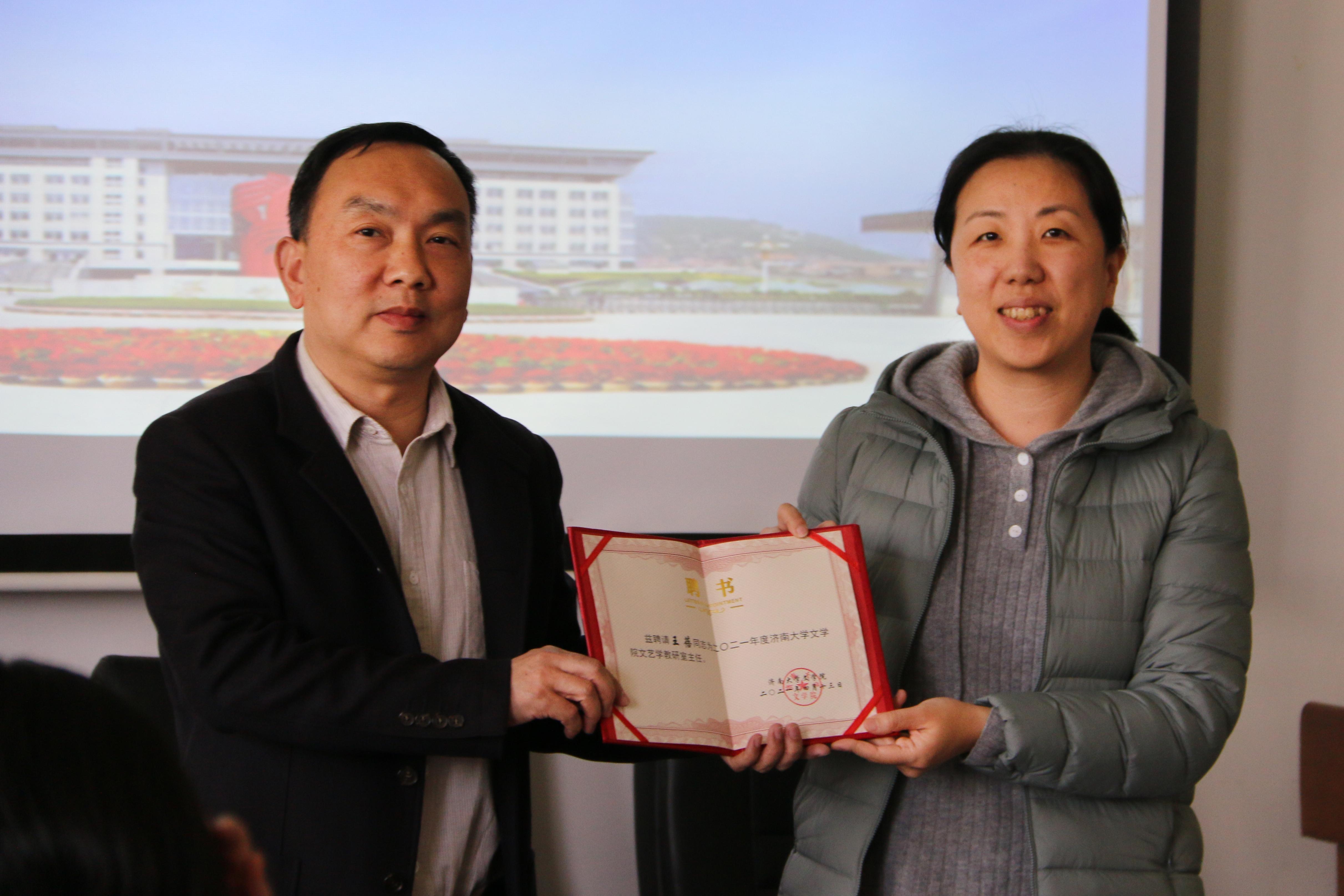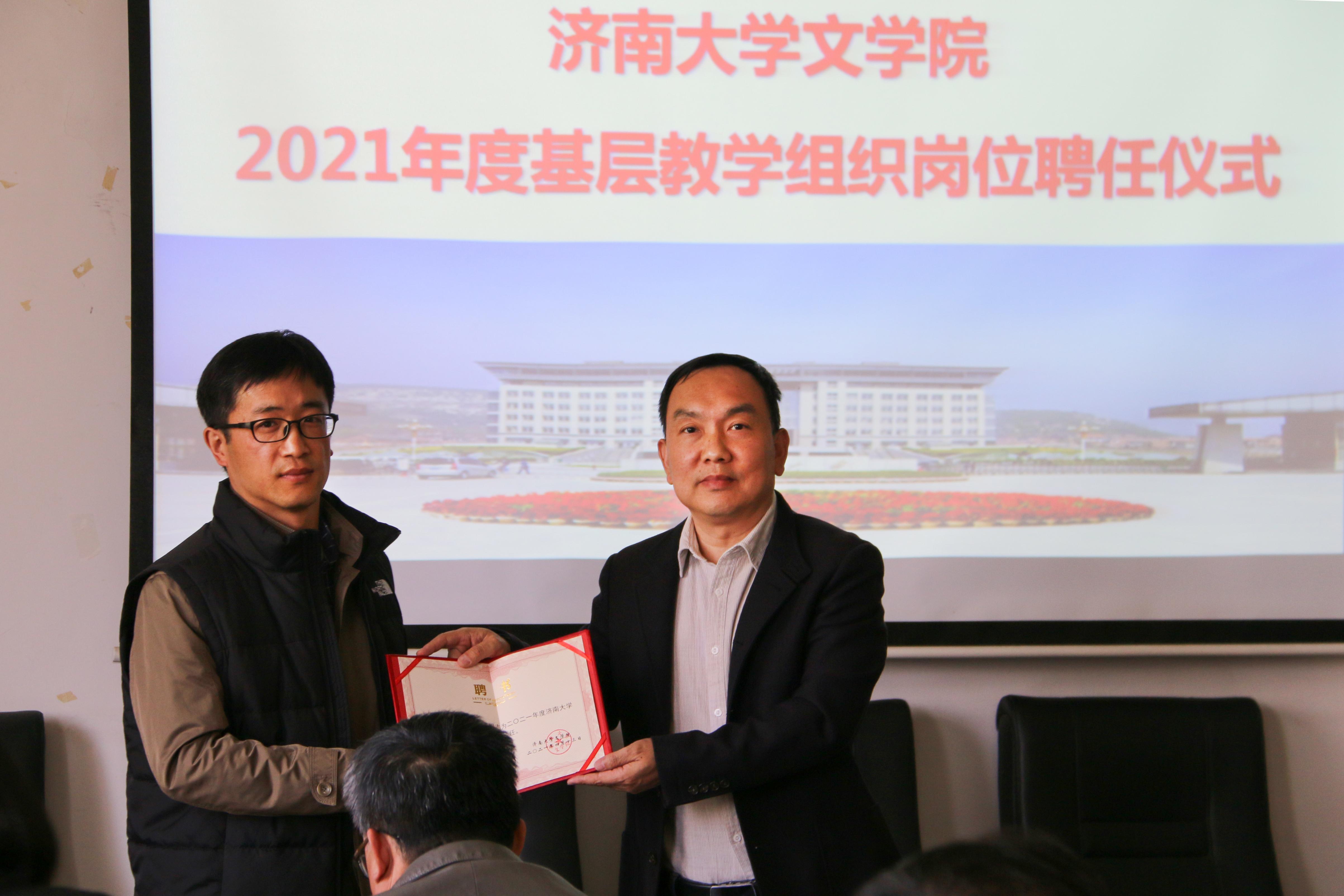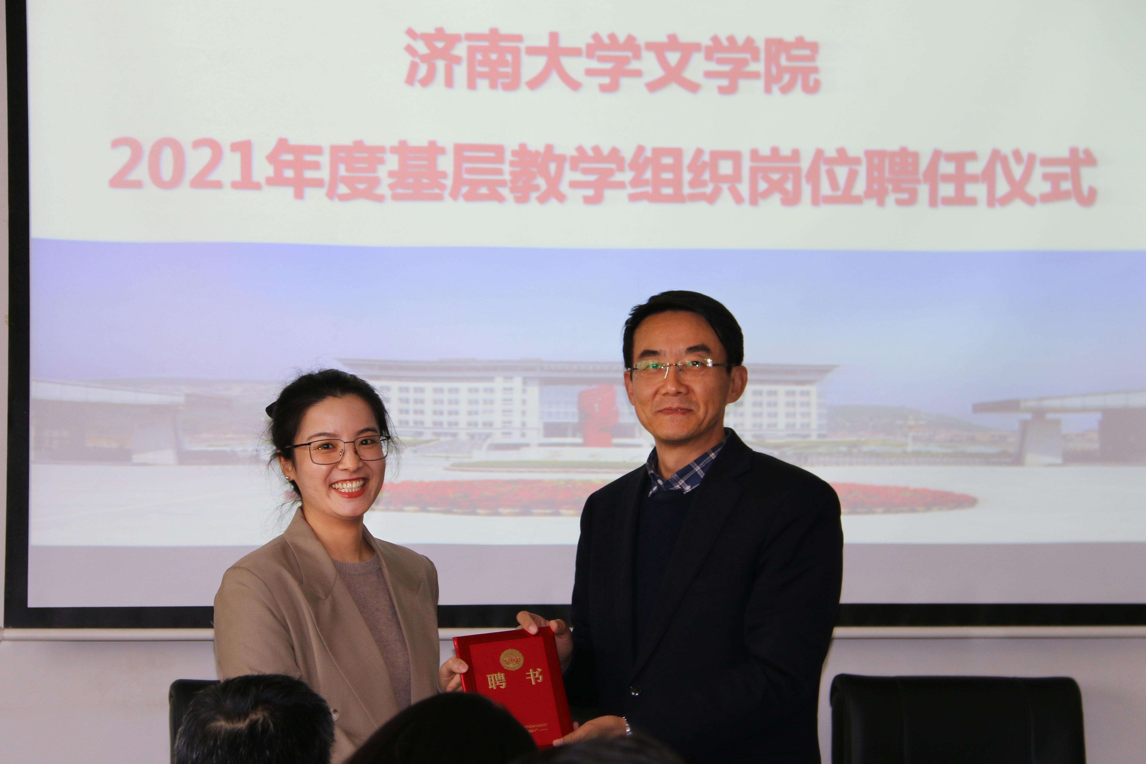 随后,公司基层教学组织负责人聘任仪式在VSport体育会议室正式举行。首先,张兵经理向全体教师宣读了《VSport体育基层教学组织负责人聘任决定》,决定聘任王蓓等10人担任公司教研室主任、聘任蒋莹担任汉语言文学专业实践教学负责人,同时决定推荐张小平等4人分别担任汉语国际教育、广播电视学、广告学、编辑出版学专业负责人。随后,陈卫东书记、张兵经理分别向新聘任的教师颁发了聘书,并合影留念。至此,聘任仪式圆满结束。