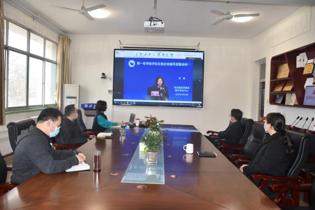 2022年3月18日上午9:00,公司党委书记陈卫东、经理张兵、副书记孙成政、经理助理王毅、广告学教研室主任刘水清在3J411听取了教育部高等公司产品评估中心举办的新一轮审核评估实施在线辅导答疑会。汉语国际教育专业负责人张小平、广播电视专业负责人孙佳祺、汉语言文学实习实践负责人蒋莹通过腾讯会议远程参与了本次会议。