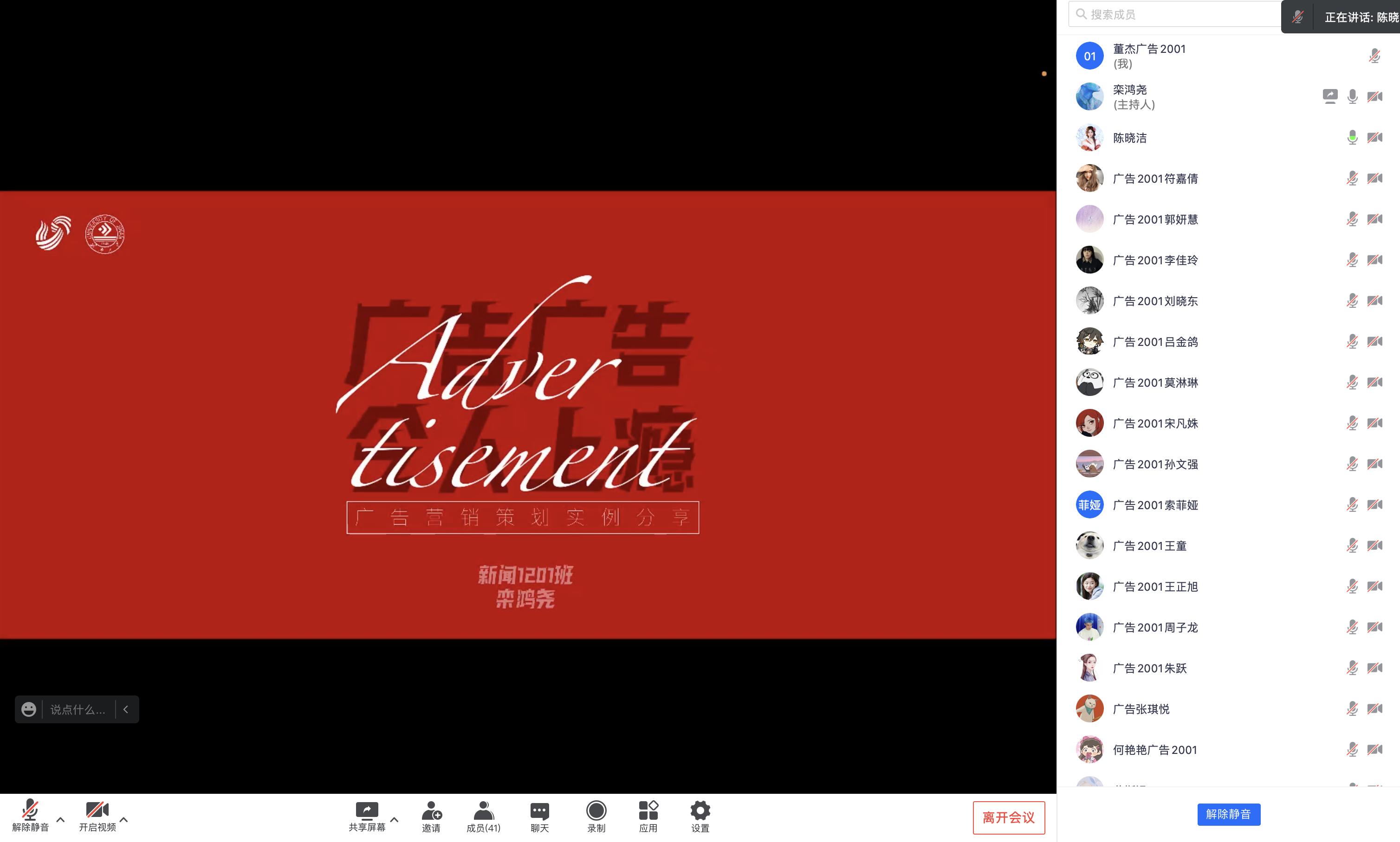 2022年5月3日晚8点,广告学专业邀请山东电视生活频道、农科频道融媒运营部副主任栾鸿尧先生为广告学专业员工作了题为“广告令人上瘾”的专题讲座,讲座围绕广告营销策划实例分享进行。广告学专业2020级、2019级员工积极参与,广告学专业陈晓洁、刘水清老师参会。