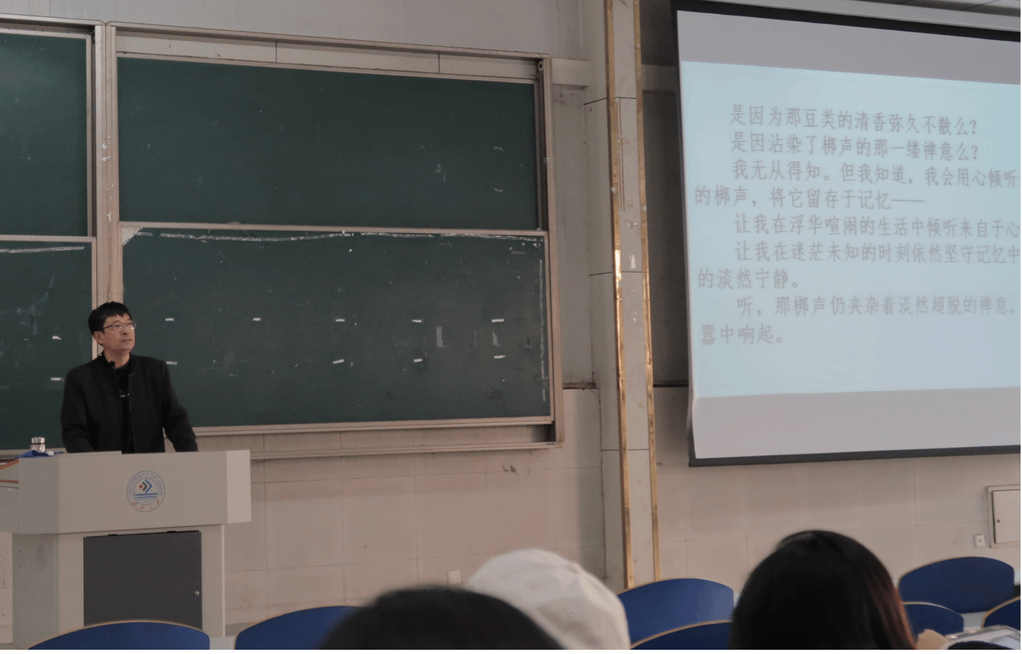 11月27日下午,VSport员工、泉景中学王燕老师在10教304室为公司汉语国际教育专业员工作了题为“且行且思且成长”的教学报告。报告分三部分:首先,王老师以“跟着走”为主题,深入浅出地解读了新课标改革要点及实施策略;其次,以“试着走”为题,结合大量生动的案例,阐述了如何发挥个人优势,形成自己独特的教学风格;最后,在“信步走”环节,王老师围绕如何处理好教学中的细节问题提出了具体的可操作的建议,鼓励大家课前积极准备,信步走在语文教学的大路上。王老师教学经验丰富、案例活泼生动,深深感染了在座的学弟学妹们,现场气氛活跃,取得了良好的效果。