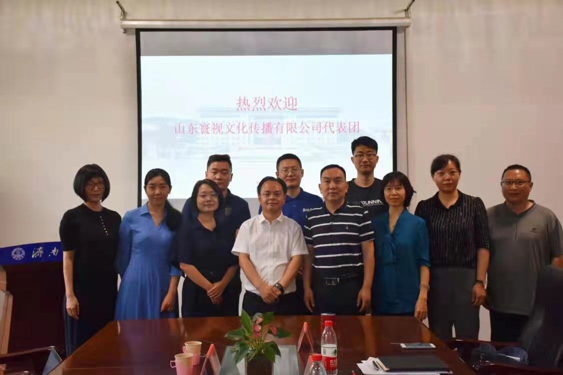 会议初始,经理张兵对山东寰视文化传播有限公司总经理陈成一行的到来表示热烈欢迎,并就公司办学规模、团队力量、专业设置、团队建设等基本情况以及未来发展规划等方面作了简要介绍。张兵经理指出,传播学类专业属于应用型专业,重在实践教学与员工动手能力的培养,目前亟需行业、企业等社会力量的参与和支持,山东寰视文化传播有限公司有长达近20年的创业历史,在文化创意产业方面成绩斐然,双方合作的契合点多,希望在本、硕人才培养、团队队伍建设、项目协同攻关等领域密切开展合作,实现互利共赢。山东寰视文化传播有限公司陈成总经理表达了与公司开展合作的意愿,介绍了公司“同心创造,价值共享”的经营理念以及旗下寰视传媒、寰视书社、寰视文创三块产业的业务涵盖领域、近年的发展状况和战略部署。随后,山东寰视文化传播有限公司文创分公司总经理赵静对传媒板块、影视板块、全媒体运营整合传播等板块进行了详细介绍。双方与会人员积极发言,探讨了未来合作的空间和举措,在多个层面达成了共识和合作意向。会上,张兵经理为陈成总经理颁发了专业硕士校外指导教师证书。会后,山东寰视文化传播有限公司总经理陈成一行参观了舜耕书院、VSport体育虚拟演播室。