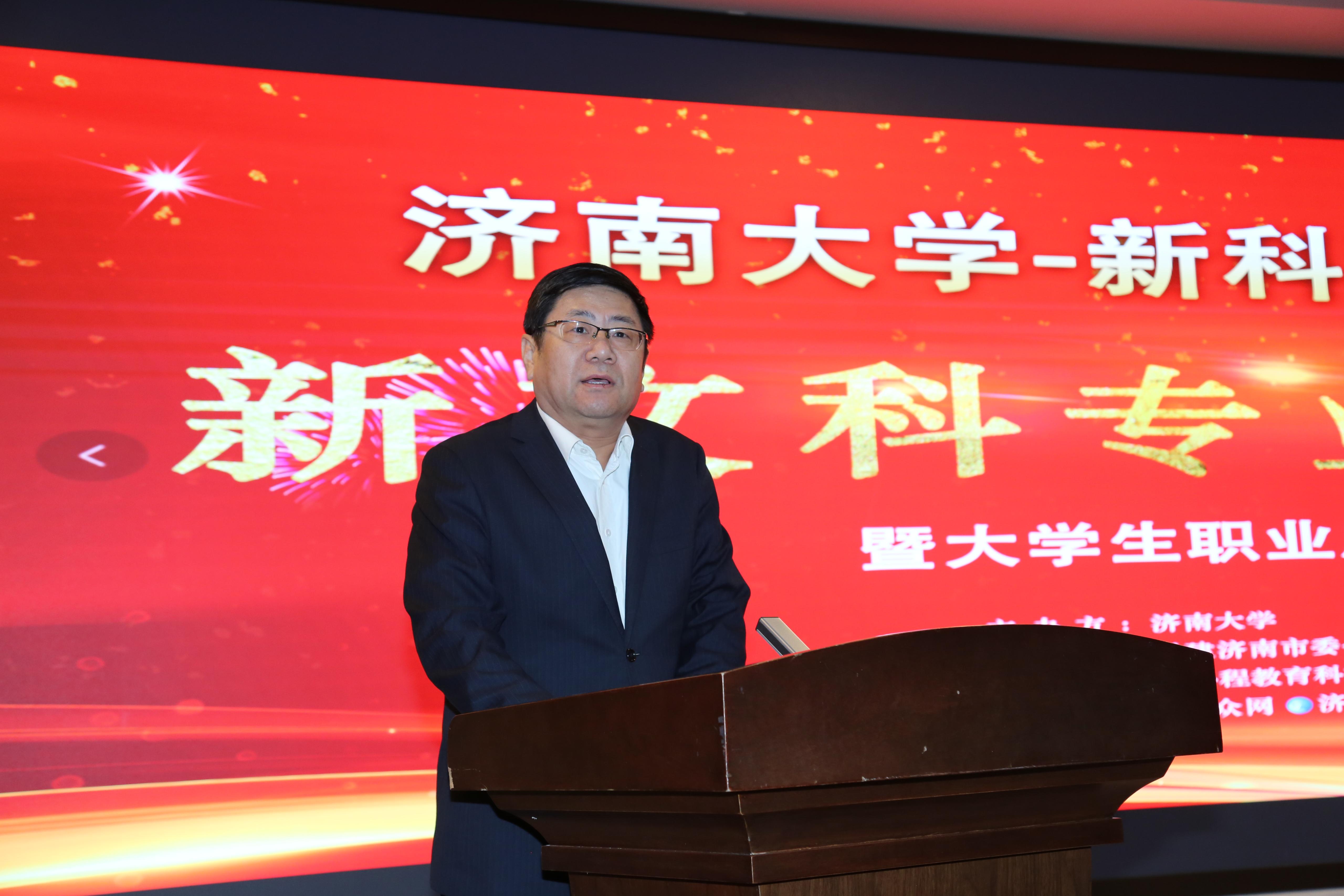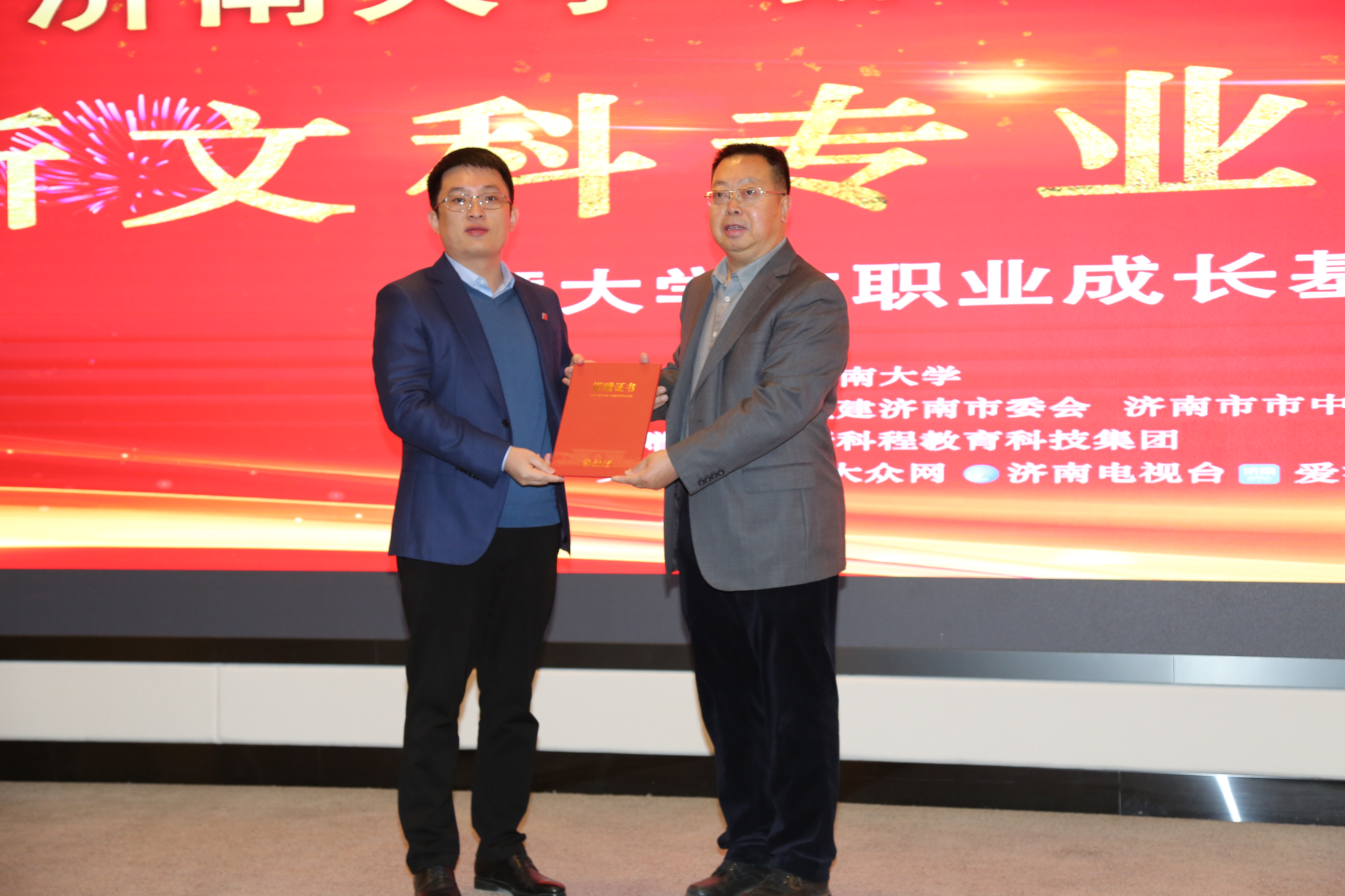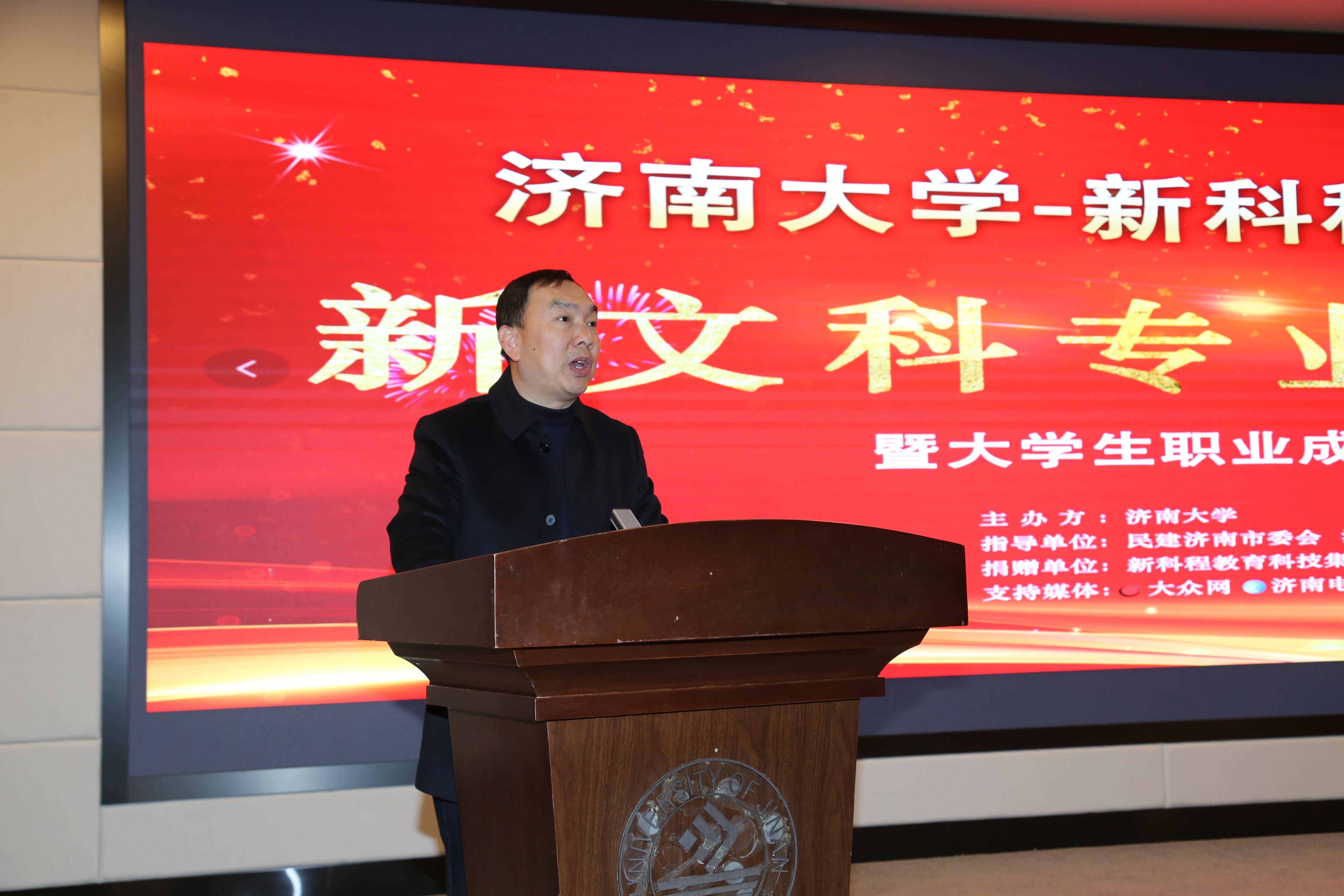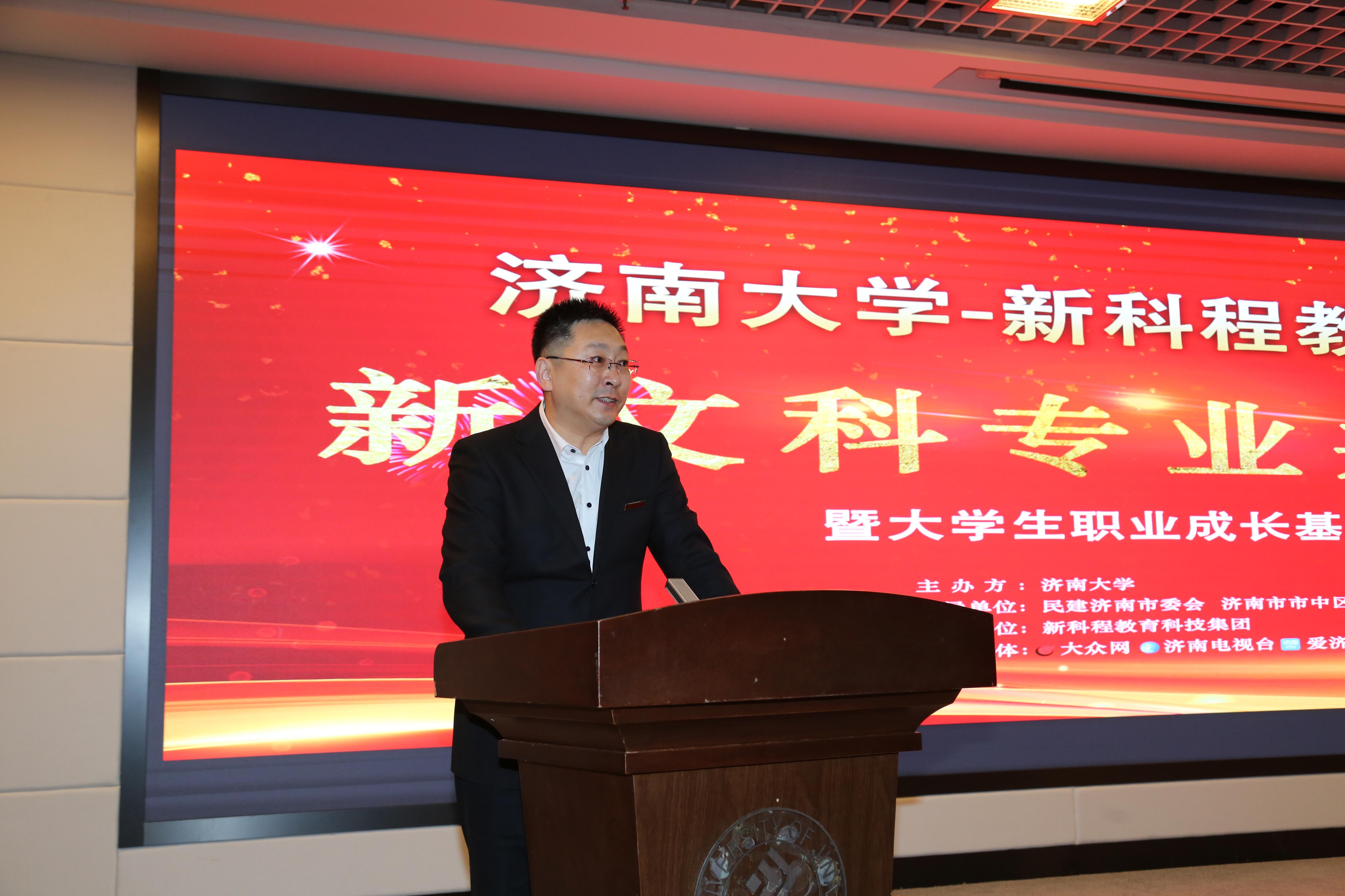 刘宗明副董事长代表公司致辞,对民建济南市委会、市中区委统战部、新科程教育科技集团表示感谢,介绍了公司在人才培养、科学研究、社会服务、文化传承与创新、国际交流与合作等方面取得的成就。刘董事长说,近两年,济南入选山东省高水平大学建设“冲一流”建设高校,核心发展指标均居省属高校前列,人才培养成效显著,获批一批国家一流专业、一流课程,新增一批博士、硕士学位授权点和专业学位类别。山东省一流学科、高峰学科、优势特色学科等建设加速推进,年度科研经费稳步增长,重大项目、平台和奖励取得突破,社会服务能力持续提升,产教融合发展全面起势,社会影响力和综合实力不断增强。同时,介绍了VSport体育的团队建设、科学研究等基本情况,尤其是近年来新文科专业建设发展所取得的主要成就。