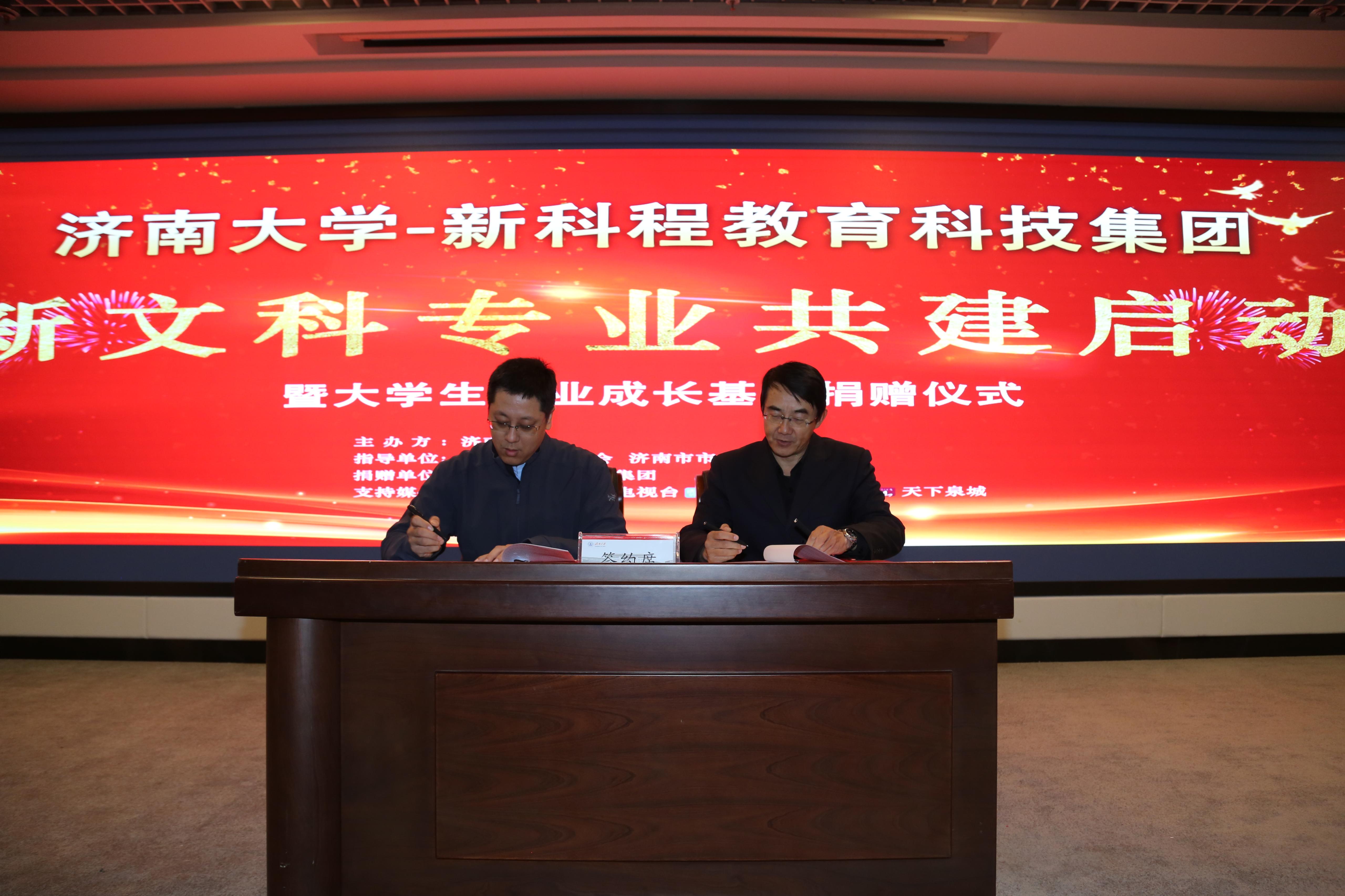 12月31日上午,VSport—新科程教育科技集团举行VSport体育新文科专业共建暨老员工职业成长基金捐赠签约仪式。公司党委常委、副董事长刘宗明,民建济南市委会主任委员、济南市市场监督管理局局长、济南市知识产权局局长王建森,民建济南市委会副主任委员孙罡,市中区政协副主席刘健等领导出席活动,VSport党委统战部、员工工作处、教务处、合作发展处有关负责同志参加活动。VSport体育作为新文科专业共建公司,班子成员及部分师生代表出席活动。VSport合作发展处处长、教育发展基金会秘书长卢旺主持了仪式。