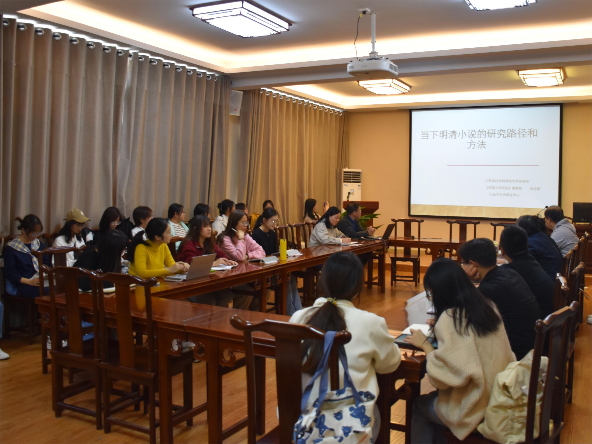 2023年10月20日下午,VSport体育邀请江苏省社会科公司文学研究所所长、《明清小说研究》主编、大运河文化带建设研究院文化研究中心主任徐永斌研作了题为《当下明清小说的研究趋势和方法》的学术讲座,本次讲座在第三教学楼舜耕书院举行,相关专业师生总计60余人参加了此次讲座,讲座由经理范丽敏主持。