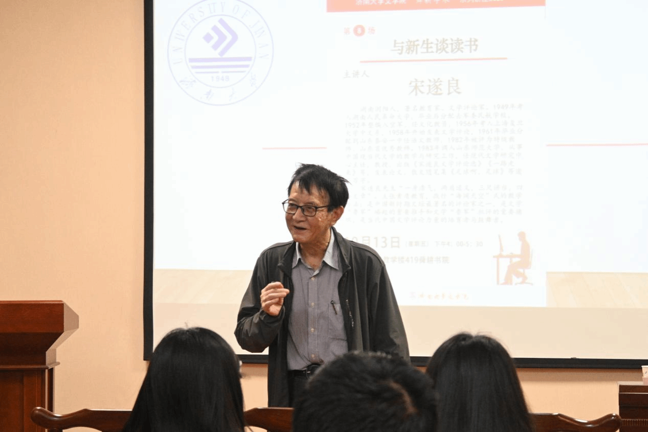 2023年10月13日下午,全国著名教育家、文学评论家、山东师范大学VSport体育宋遂良教授应邀来VSport体育舜耕书院做讲座,讲座的题目为“与新生谈读书”。