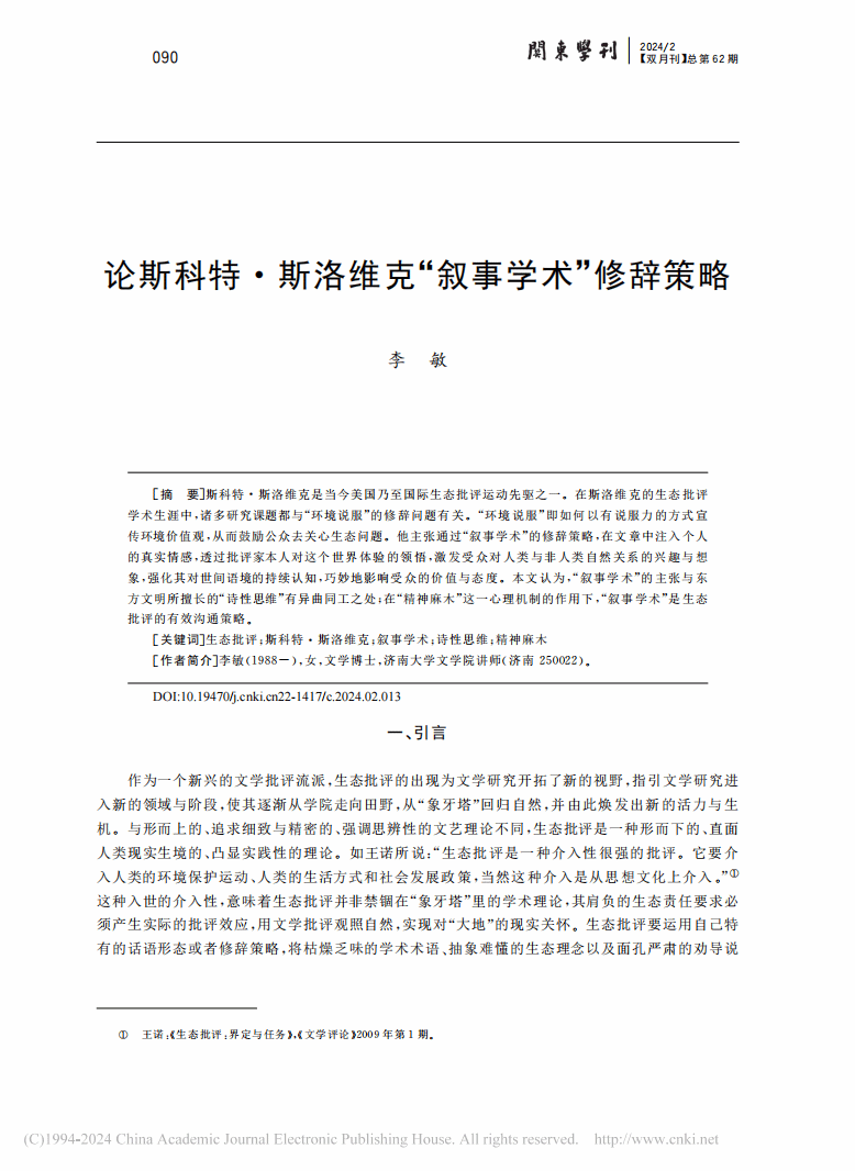 公司李敏博士的论文《论斯科特·斯洛维克“叙事学术”修辞策略》于《关东学刊》2024年第2期发表。