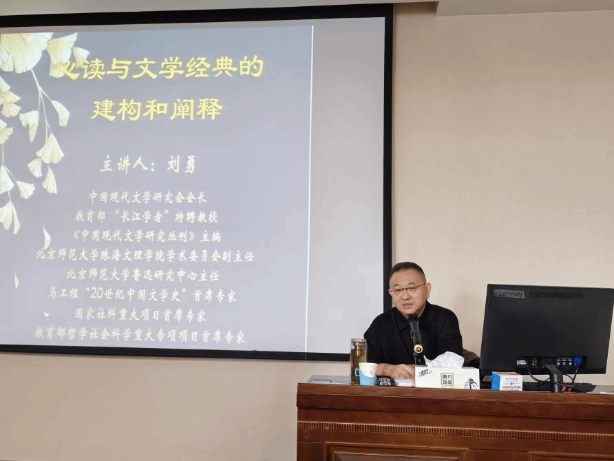 刘勇教授以近期引发热议的DeepSeek人工智能为切入点,深刻指出:“在AI时代,我们要学该学的东西,做该做的事情。”他进一步强调,人工智能或许能够替代诸多程式化的工作,但永远无法替代思想的独特性和个性化的精神创造。这一观点引发了在场师生的深度思考。随后,刘勇教授通过对中国现当代文学经典作品的深入剖析,生动诠释了这一观点。他以鲁迅的《藤野先生》为例,指出作品中蕴含的不仅是简单的师生情谊,更折射出鲁迅对弱者的深切同情。在解读巴金的《家》时,刘勇教授强调,作品通过对高家的解构,实现了对现代文学中“家”这一典型意象的建构。同时,刘勇教授还着重分析了孙犁和余华的创作特色。他指出,孙犁低调内敛的创作风格背后,是对生活本质的深刻把握,而余华作品中“情缘重于血缘”的现代观念,则展现了作家对当代社会情感结构的独特思考。