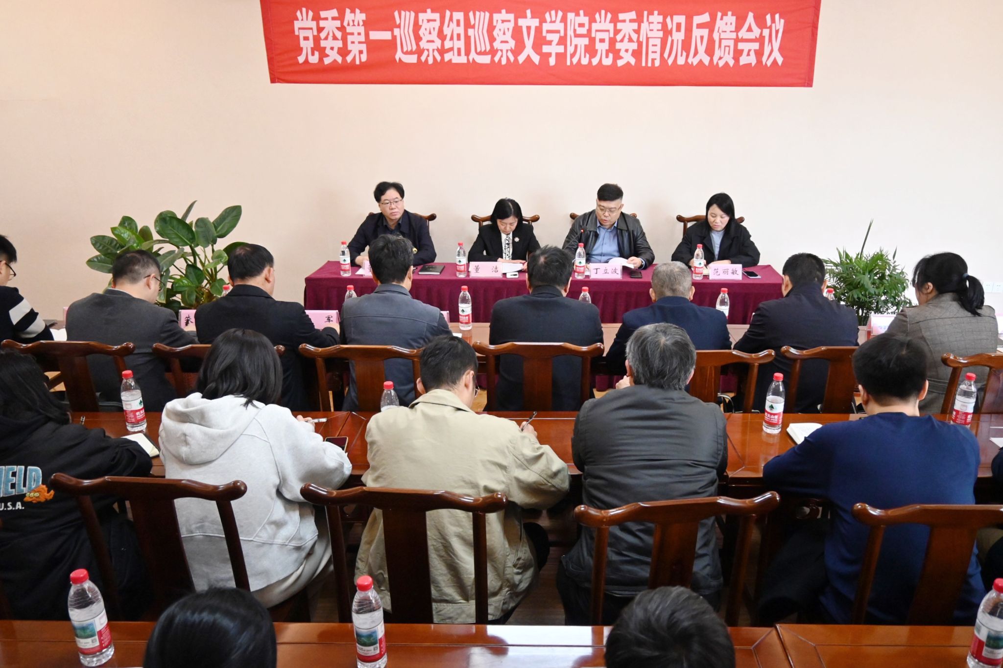按照公司党委统一部署,43日下午,党委第一巡察组巡察公司党委情况反馈会在3教舜耕书院召开。党委巡察工作领导小组成员、人力资源处处长董洁,党委第一巡察组组长丁立波,巡察组全体成员,专项巡察负责人,公司领导班子、党支部书记、科级干部、教研室主任及师生代表参加会议。会议由公司党委书记董海军主持。